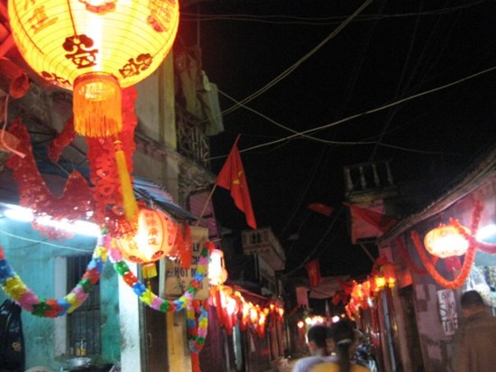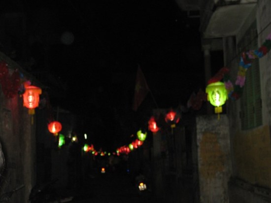Từ đêm 21/4/2010, đèn lồng đã sáng rực cả con đường làng