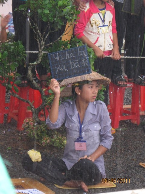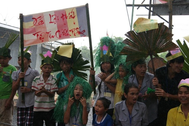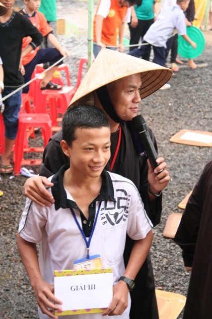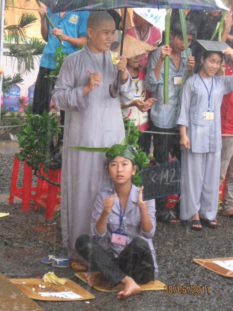Đi qua nhiều câu hỏi bạn trẻ càng muốn thể hiện kiến thức mình học được, muốn rung chuông chùa và càng thấy thích thú, náo nhiệt hơn khi được những người bạn, quý Thầy cô cỗ vũ hết sức nhiệt tình mặc dù trời mưa khá lớn và nặng hạt.