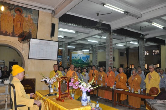 Thay mặt chư Tôn đức, TT Thanh Nhiễu – Chánh Duy na dâng lời tác bạch, báo cáo tổng kết tu học và sinh họat chư Tăng trong 3 tháng an cư kiết hạ .