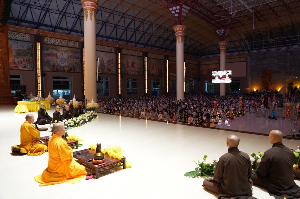 Trong ngày cuối cùng của khoá tu, đại chúng đồng tâm thực hành khóa lễ Quán âm tam thời hệ niệm và thả cá phóng sinh để hồi hướng công đức về cho cửu huyền thất tổ, các chiến sĩ đã vị quốc vong thân, ông bà cha mẹ nhiều đời được siêu sinh Tịnh độ, và cầu nguyện cha mẹ hiện tiền tăng phúc tăng thọ, sống an lành dưới bóng Phật từ bi.