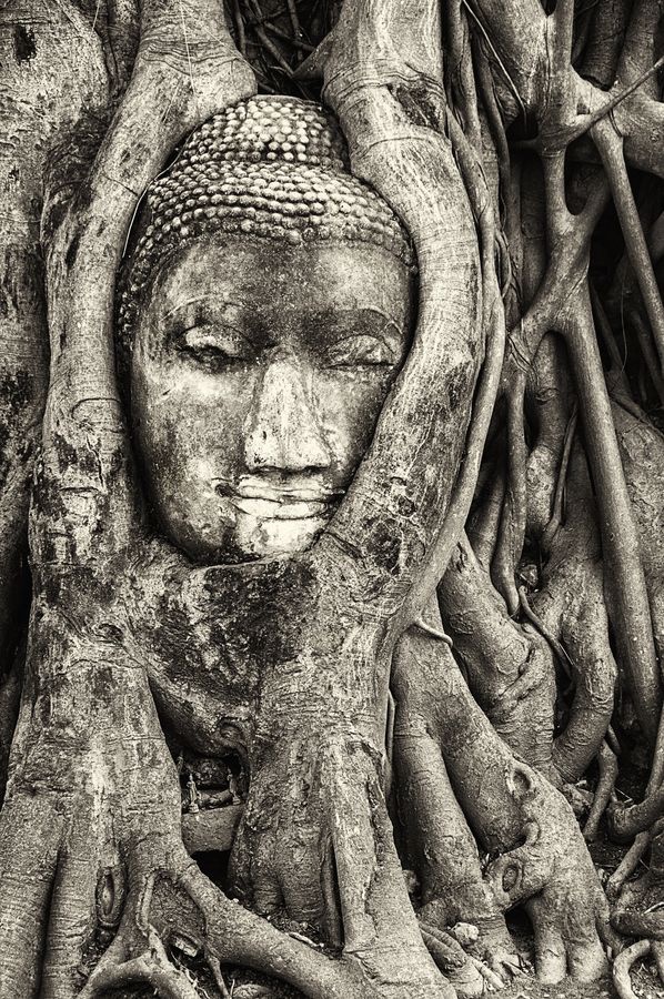 Người Thái tin rằng một binh lính đã đặt đầu của pho tượng vào gốc cây giữa lúc cố đô bị phá hoại. Trải qua nhiều năm tháng, những chùm rễ vươn ra ôm trọn lấy khuôn mặt đức Phật, tạo nên kiệt tác độc nhất vô nhị, sống động đến kỳ lạ. Bức tượng phủ rêu nhanh chóng trở thành điểm đến tâm linh thu hút du khách khắp thế giới.