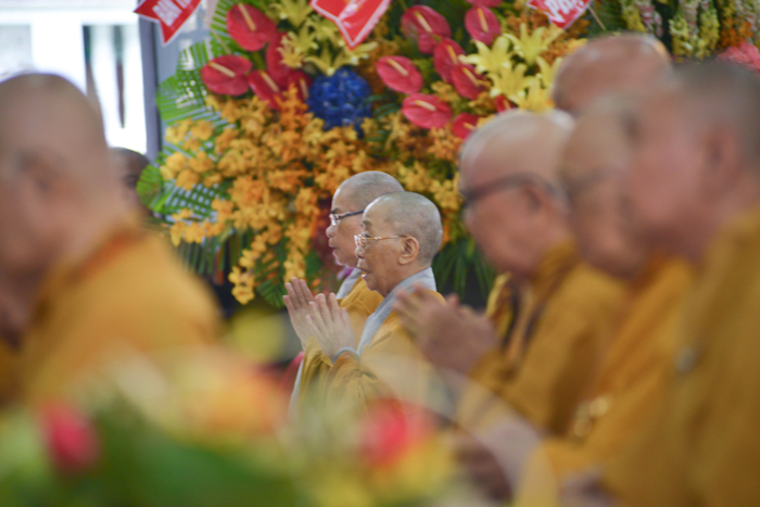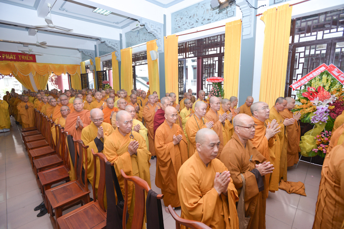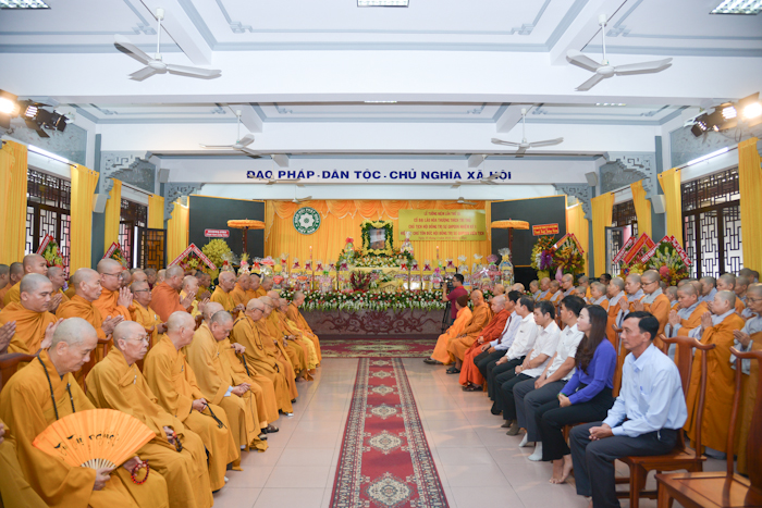 Quang lâm chứng minh buổi lễ có: HT.Thích Trí Quảng – phó Pháp chủ kiêm giám luật HĐCM; HT.Thích Đức Nghiệp – phó Pháp chủ HĐCM; HT.Thích Hiển Tu – phó Thư ký HĐCM; HT.Thích Viên Giác, HT.Thích Giác Tường; HT.Thích Như Niệm – đồng ủy viên TT HĐCM; HT.Thích Thiện Nhơn – Chủ tịch HĐTS; HT.Thích Thiện Pháp – phó Chủ tịch TT HĐTS; HT.Thích Thiện Tánh, HT.Thích Giác Toàn – đồng phó Chủ tịch HĐTS; Chư tôn giáo phẩm HĐCM, HĐTS; các Ban Viện, văn phòng 2 Trung ương, Ban trị sự PG TP.HCM; và Tăng Ni Phật tử các nơi; cùng đại diện lãnh đạo chính quyền TP.HCM đồng về tưởng niệm.