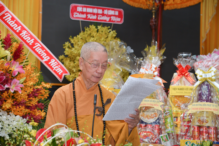 Để ghi nhân những đóng góp to lớn của cố Đại lạo Hòa thượng cho GHPGVN. HT.Thích Trí Quảng thay mặt cho Trung ương Giáo Hội tuyên đọc lời tưởng niệm.