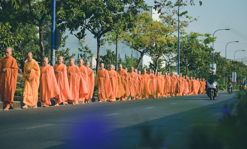 Chư Tăng Ni thiền hành khất thực ngày tưởng niệm Tổ sư vắng bóng (đường Mai Chí Thọ, Quận 2)