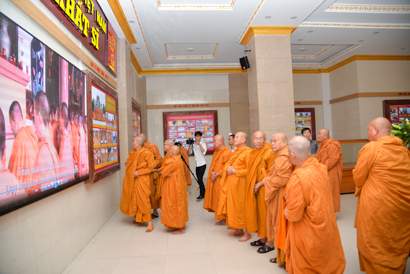 Chư Tôn đức hệ phái xem triển lãm ảnh trong bảo tháp Hồng Ân