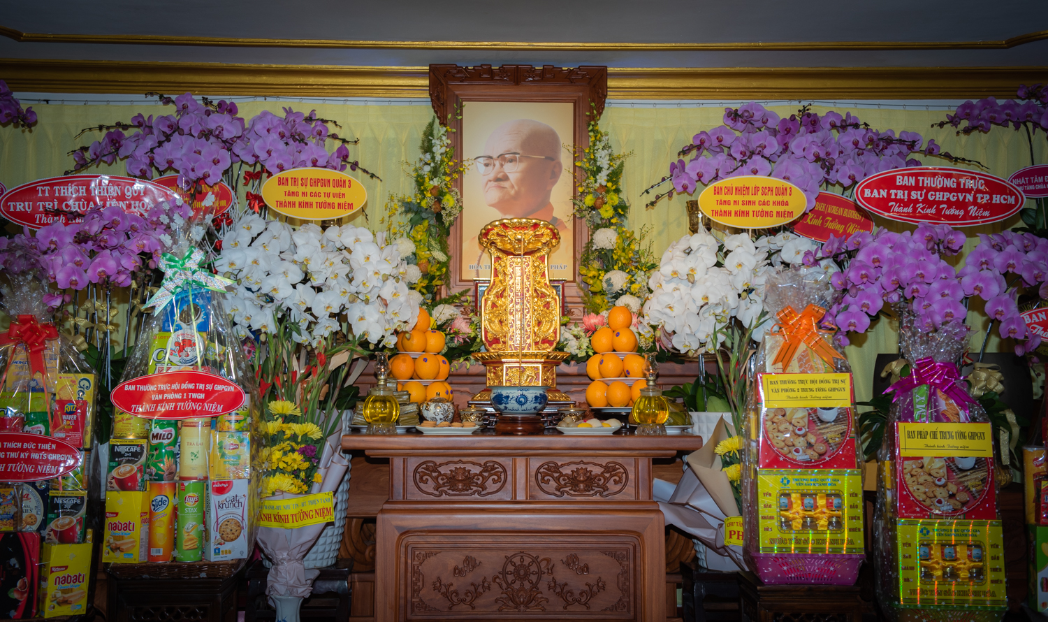 Lời tưởng niệm có nêu “nhân Lễ Đại tường của Cố Trưởng lão Hòa thượng, trước linh đài khói hương nghi ngút, đèn Bát Nhã lung linh, chúng tôi là những người bạn đồng hành, đồng sự pháp lữ trong chánh pháp, nghĩa Linh Sơn trong sáng đời đời, xin đốt nén tâm hương với lòng thành kính, nước Bát đức trắng trong, hoa giải thoát thơm tho, kính dâng lên cúng dường Giác linh Trưởng lão Hòa thượng, để gọi là thể hiện mối tâm giao, lòng tưởng niệm chân thành đối với Trưởng lão Hòa thượng. Kính mong Giác linh Trưởng lão Hòa thượng thùy từ gia hộ, để chúng tôi đầy đủ nghị lực, đầy đủ sự gia trì, để tiếp tục phát triển ngôi nhà Giáo hội Phật giáo Việt Nam, Phật giáo Tp. Hồ Chí Minh ngày càng hưng thịnh, trang nghiêm, vững mạnh trong lòng dân tộc, góp phần thực hiện hữu hiệu phương châm hoạt động của Giáo hội: “Đạo pháp – Dân tộc – Chủ nghĩa Xã hội” cùng trang sử rạng ngời của Phật giáo Việt Nam thời hiện đại.”
