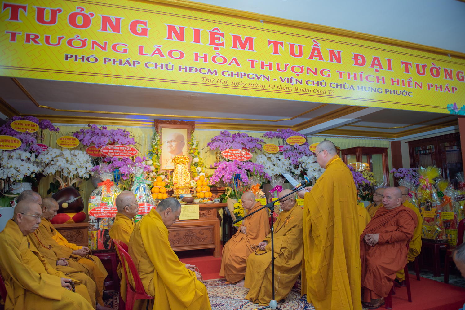 Sáng 26/10 (nhằm 10/9 Canh Tý), tại chùa Hưng Phước (Quận 3, TP.HCM) Trung ương GHPGVN đã trang nghiêm tưởng niệm ngày lễ Đại tường của cố Đại lão Hoà thượng Thích Hiển Pháp – Phó Pháp Chủ HĐCM, nguyên Đại biểu Quốc hội khóa VI, XI, nguyên Phó Chủ tịch kiêm Tổng Thư ký HĐTS GHPGVN.