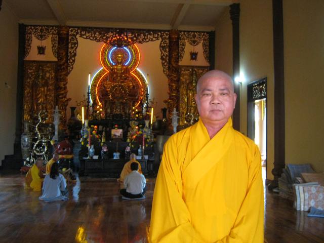 Đúng như bài kệ tán dương Ngài “Ái hà thiên xích lãng, Khổ hải vạn trung ba, Dục thoát luân hồi khổ, Tảo cấp niệm Di Đà” (Sông ái sóng ngàn thước, Bể khổ dậy muôn trùng, Kiếp luân hồi muốn thoát, Sơm gấp niệm Di Đà) Pho tượng Phật A Di Đà phóng quang do Điêu Khắc gia Thụy Lam- người tạc nụ cười cho Phật, cùng đệ tử là nghệ nhân điêu khắc Hồ Văn Đen những nhà điêu khắc đã tạc nên những tượng Phật kỷ lục quốc gia như tượng Phật Di Lặc trên núi Cấm- Tịnh Biên, tượng Phật Bà Quan Âm-chùa Linh Ứng, Bãi Bụt, Đà Nẳng, .. thực hiện gần 4 năm.
