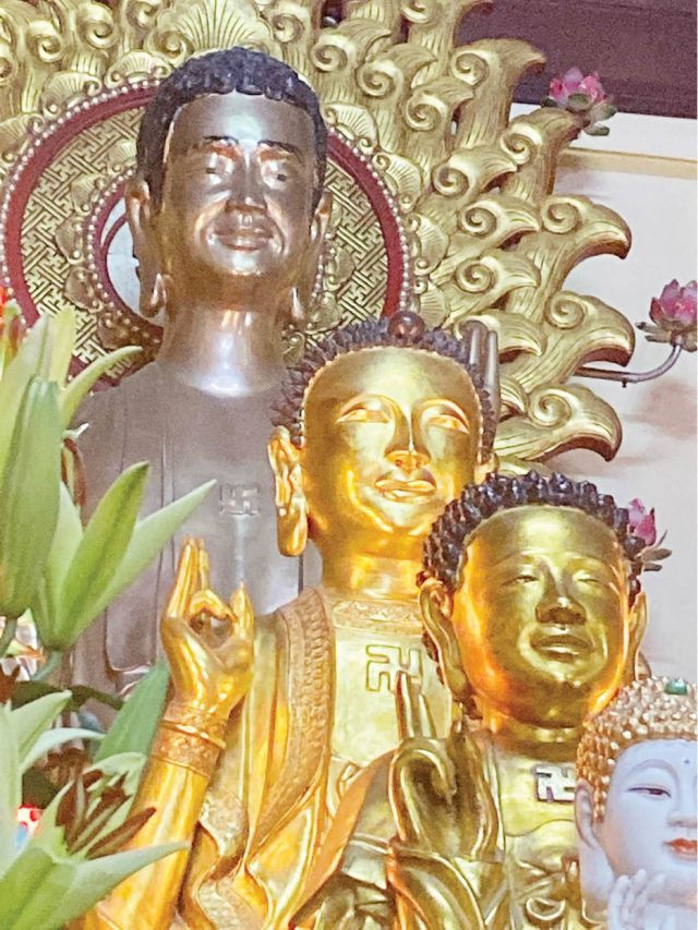 Hiện tại ở gian giữa chánh điện chùa Vạn Phước có 11 bức tượng Phật, gồm các chất liệu đồng, gỗ, sứ, đất. Ngoại trừ tượng bằng chất liệu sứ trắng và gỗ thì các tượng Phật còn lại bên ngoài có màu vàng rất giống nhau, không phân biệt tượng bằng chất liệu đồng hay đất. Thầy Thích Ngộ Tùng, trụ trì chùa Vạn Phước cho biết: “Tượng Phật bằng đất của chùa được đan bằng nan tre, phết giấy bổi và bên ngoài đắp đất sét. Bức tượng đã được chùa thếp vàng hai lần”. Nếu không có thầy Thích Ngộ Tùng chỉ rõ thì thật khó để phân biệt được tượng đồng hay tượng đất khi không chạm được tay vào.