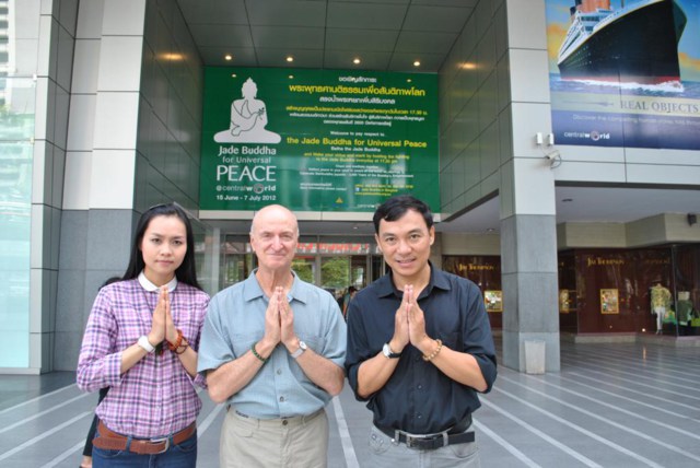 Khác với nhiều nơi, lần này Phật Ngọc không tọa vị tại chùa mà được tôn trí trước trung tâm thương mại lớn của nước Thái – Central World.