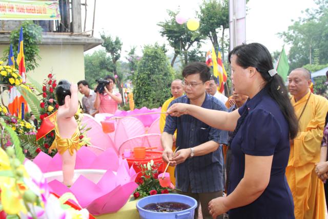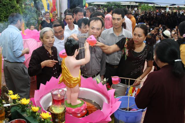 Cuối cùng là nghi thức tắm Phật – nghi thức trang nghiêm nhất của buổi lễ. Đông đảo Tăng Ni, Phật tử đạo tràng cùng tham gia vào nghi thức tắm Phật trong niềm hoan hỷ, an lạc của ngày Đức Từ Phụ đản sinh, với những niềm mong ước của mỗi Phật tử cho cuộc sống thái hoà, người người sống yêu thuơng, nhà nhà ấm no, hạnh phúc.