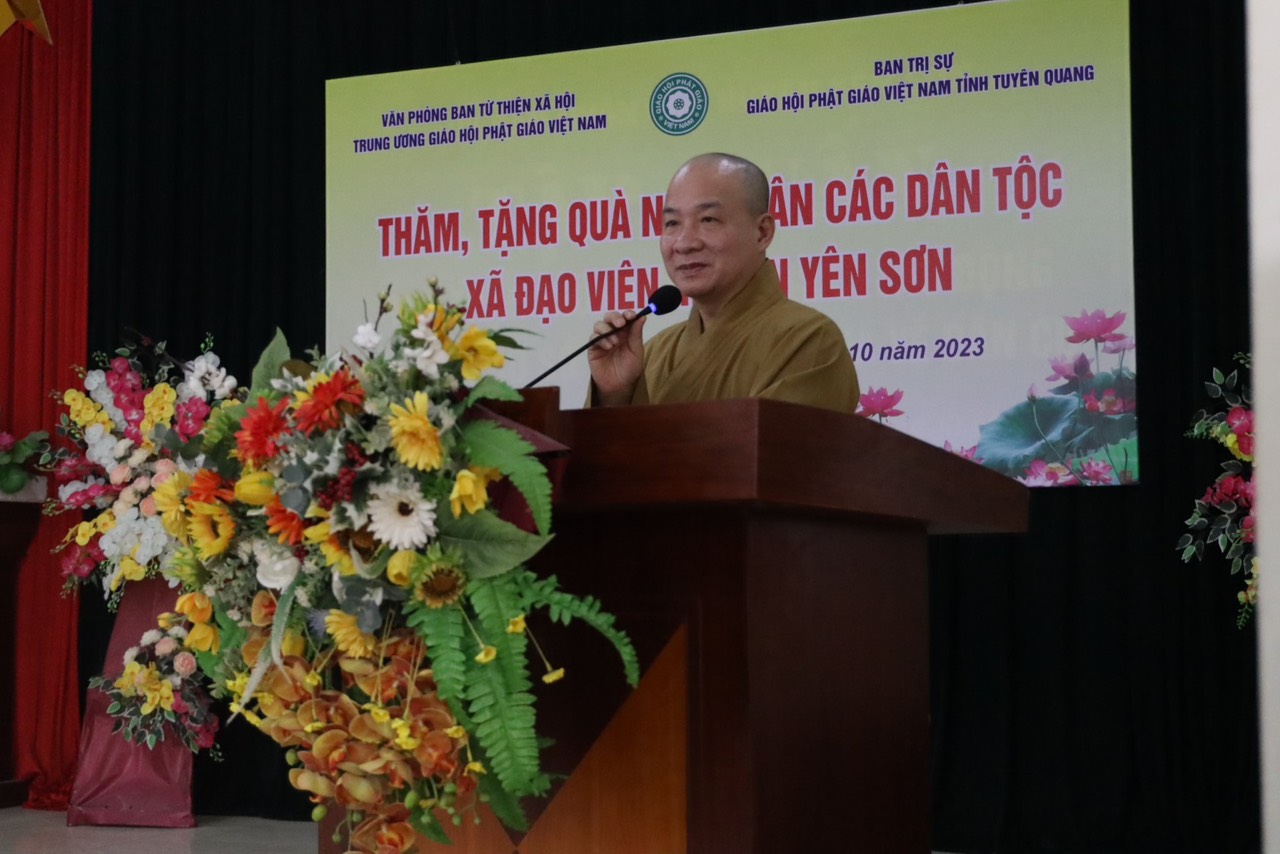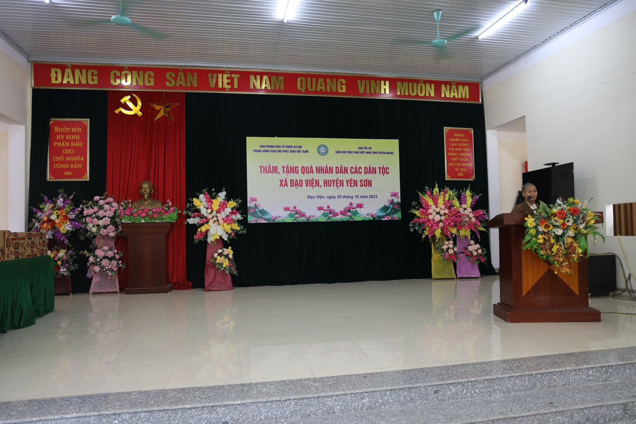 Sau khi được giao Quyết định nhân sự, Văn phòng Ban Từ Thiện Xã Hội đã triển khai công việc, phối hợp với BTS GHPGVN tỉnh Tuyên Quang thực hiện chương trình “Thăm và Tặng quà cho nhân dân các dân tộc xã Đạo Viện, huyện Yên Sơn, tỉnh Tuyên Quang” với mong muốn tiếp thêm tinh thần và vật chất chia sẻ và kết nối yêu thương. Đồng thời, nêu cao tinh thần đạo Phật qua lời dạy của đức Thế Tôn “Phụng sự chúng sinh là cúng dàng chư Phật”.