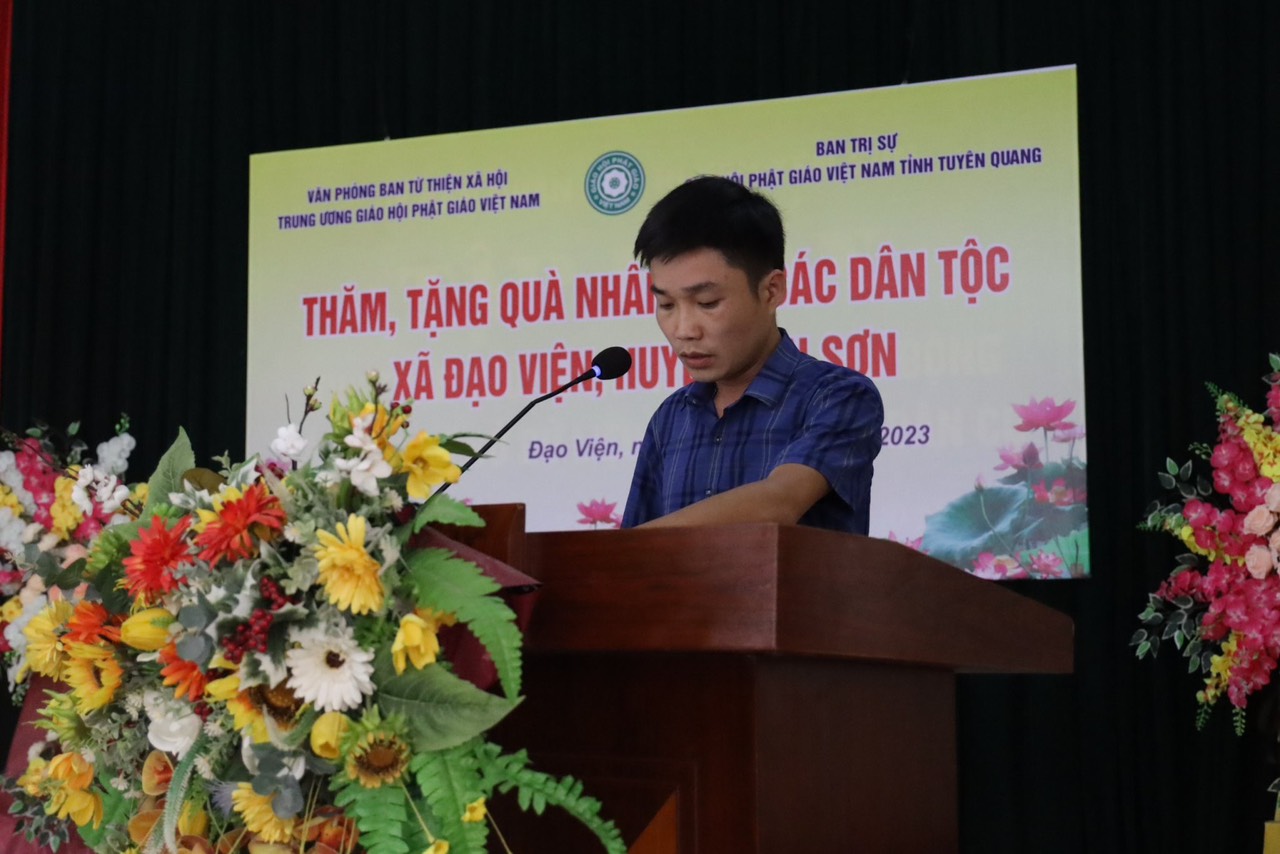 Tham dự buổi phát quà, có TT. Thích Trí Huệ – Phó Trưởng Ban, kiêm Chánh Thư ký Ban Từ thiện – xã hội GHPGVN; Thượng toạ Thích Thanh Phúc- Uỷ viên hội đồng trị sự TƯ GHPGVN, Phó Trưởng Ban Thường trực Ban Trị sự GHPG VN tỉnh Tuyên Quang; Đại đức Thích Đạo Tuyên – Chánh Văn phòng Ban TTXH TƯ GHPGVN, Phật tử Huệ Thảo -Phó Chánh Văn Phòng Ban TTXH -TW GHPG VIỆT NAM Phật tử Liên Như -Thư ký Phân ban từ thiện đối ngoại và quan hệ quốc tế, cùng chư tôn đức Tăng, Ni khối Văn phòng Ban TTXH TƯ, chư tôn đức Tăng, Ni Thường trực Ban Trị sự, Ban TTXH GHPGVN tỉnh Tuyên Quang.