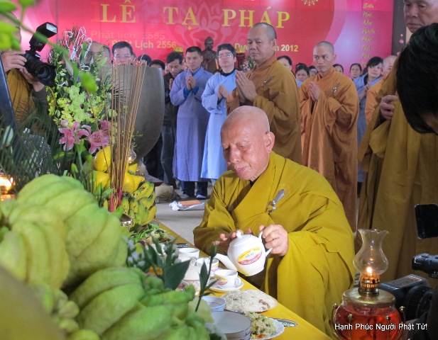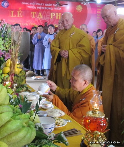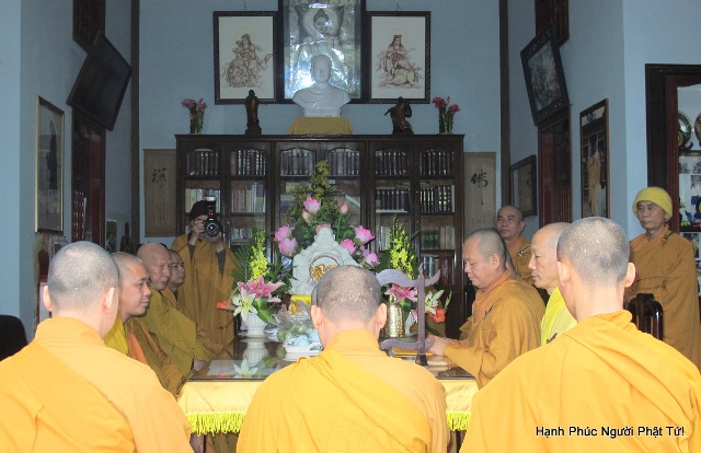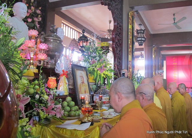 Theo đúng chương trình lúc 8 giờ sáng, đại chúng đồng vân tập đông đủ về Tổ Đường, Thượng tọa Trụ trì Thiền viện Sùng Phúc đã có một thời Pháp chia sẽ nhằm ôn lại gương sáng Tổ sư cả một đời “ Hoằng Pháp Lợi Sinh” cho chư Tăng, chư Ni và Phật tử. Đồng thời, Thầy sách tấn, mong mỏi toàn thể hội chúng khi tưởng nhớ đến Cố Hòa Thượng hãy phát nguyện học theo gương hạnh của Ngài, không ngừng cố gắng chuyên nhất học Phật Pháp.