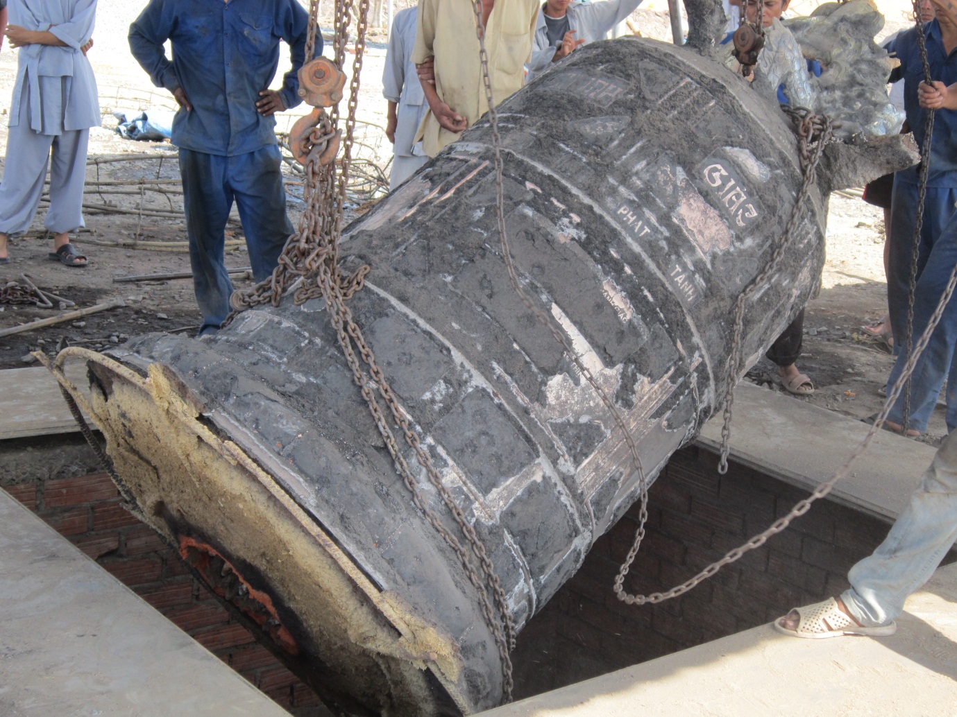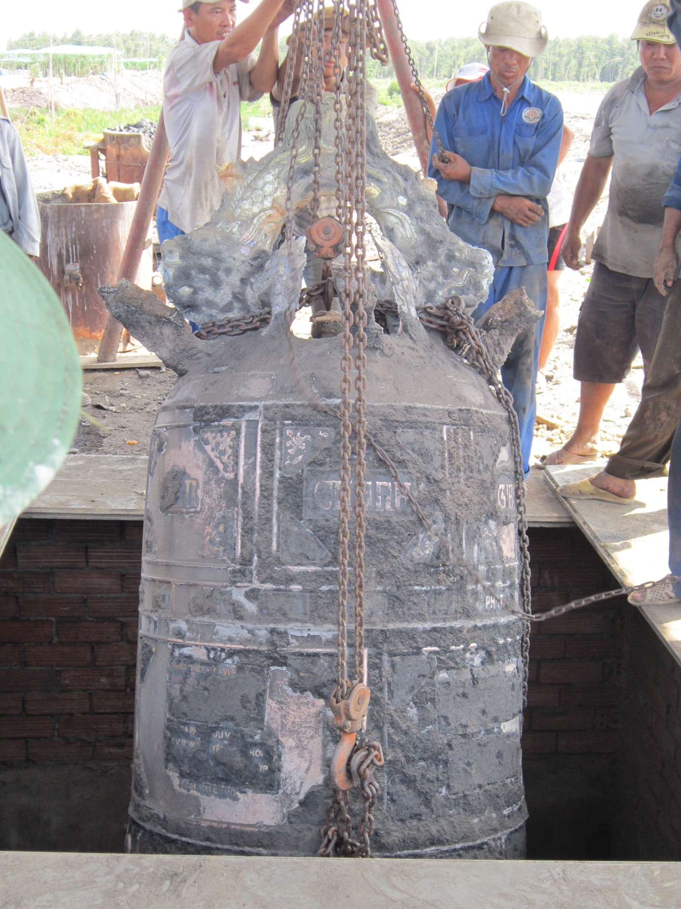 Chuông do một hiệp thợở thành phố Huế chế tác.