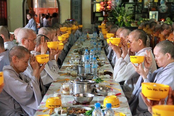 Mặc dù thời tiết nóng bức, không gian chật kín người nhưng ai cũng thành kính trang nghiêm, hướng về Đức Từ Phụ dâng tâm thành, tọa thiền cúng dường.