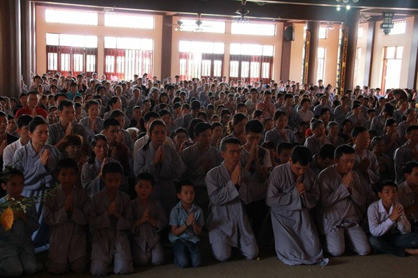 Buổi chiều cùng ngày, chư Tôn đức Giáo thọ đã tổ chức truyền Tam quy ngũ giới cho hơn 1500 Phật tử phát tâm quy y.