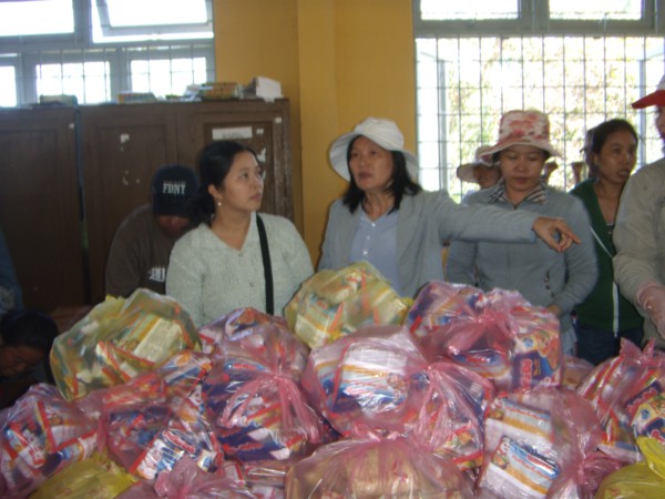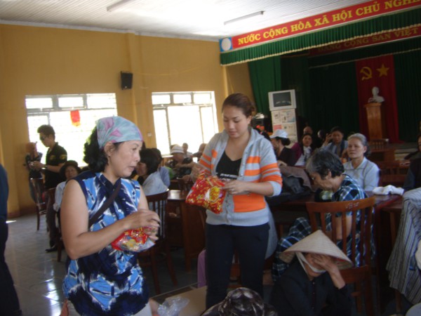 Tại đây sau khi ân cần thăm hỏi, đoàn đã trao tặng 300 phần quà, mỗi phần gồm : gạo, mì gói, bột ngọt, quần áo cùng nhiều vật phẩm khác trị giá 300.000 đồng một phần cho bà con nghèo có hoàn cảnh khó khăn .