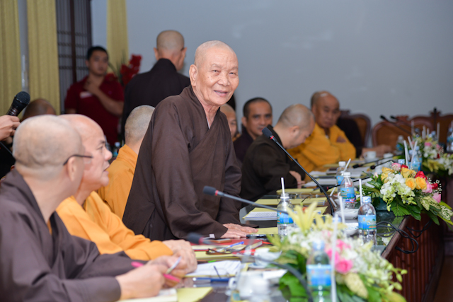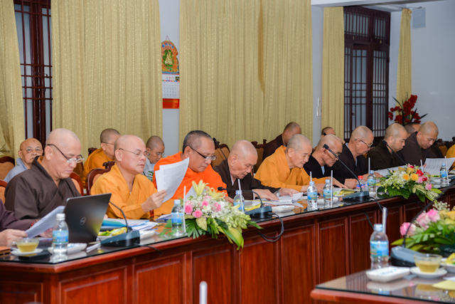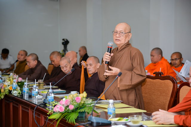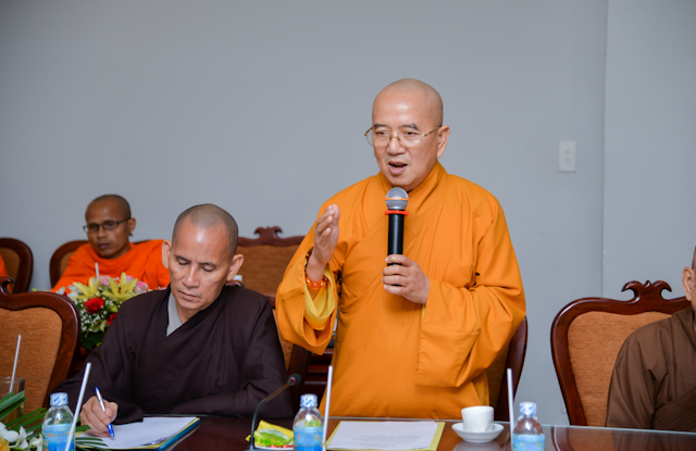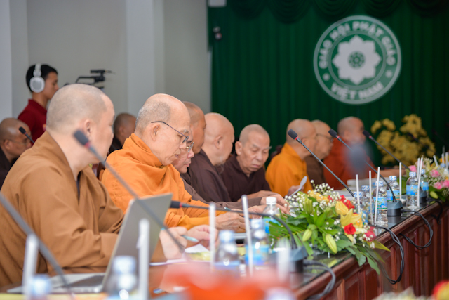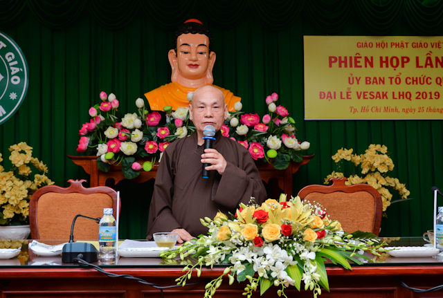 Chủ trì buổi họp có HT.Thích Thiện Nhơn, Chủ tịch HĐTS, đồng Chủ tịch Ủy ban Tổ chức quốc tế Đại lễ Vesak LHQ (ICDV), Chủ tịch UBTCQG Đại lễ Vesak LHQ 2019; HT.Thích Thiện Pháp, Phó Chủ tịch Thường trực HĐTS, Phó Chủ tịch đặc trách tổng hợp UBTCQG; cùng chư tôn đức HĐTS, thành viên UBTCQG Đại lễ Vesak LHQ 2019…