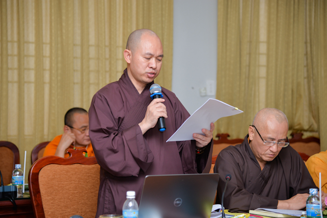 TT.Thích Đức Thiện, Phó Chủ tịch kiêm Tổng Thư ký HĐTS, Tổng Thư ký UBTCQG báo cáo quá trình làm việc với ICDV, chủ trương của Thủ tướng Chính phủ chấp thuận cho GHPGVN đăng cai tổ chức sự kiện văn hóa, tôn giáo và học thuật quốc tế này. Thượng tọa cũng đã thông báo kết quả hội nghị lần I ngày 11, 12-10 vừa qua tại Hà Nội, phối hợp giữa ICDV và GHPGVN, với sự tham dự của Ban Tôn giáo Chính phủ đã thảo luận và thống nhất các nội dung quan trọng khác liên quan.