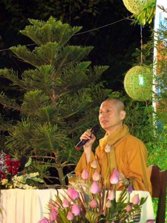 Sau nghi thức niệm Phật cầu gia bị, TT Thích Chân Quang đi vào đề tài thuyết giảng bằng hình ảnh của một người đạp xe ngược dốc là thế nào? Qua đó dẫn dụ cho sự tu hành của một con người cũng y như thế. Tức là chúng ta phải hiểu TU HÀNH là chặng đường dài, rất vất vã, gian nan, phải vượt qua nhiều sai lầm để đi dấn về hướng vô ngã. Và đầu đường của sự tu hành chính là BIẾT LỖI CHÍNH MÌNH. Ngược lại, người nào chưa thể biết lỗi chính mình là người đó chưa hế biết tu, đang thả dốc với kết cuộc không tránh khỏi đau khổ, hiểm nguy. Hình ảnh người này giống như xe chạy xuống dốc không cần gì phải lo, cứ thả dốc, chạy rất là thoải mái, tới khi nào hết dốc rồi họ mới thấy lửa cháy, dao đâm, chông nhọn…