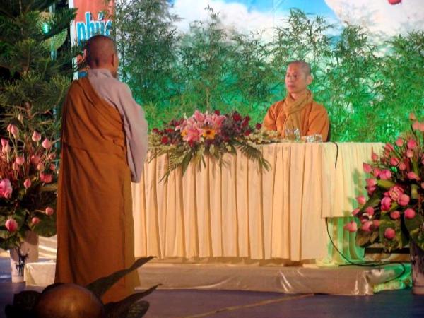 Đến đây, bài Pháp thoại kết thúc. Đại diện cho Chư Tăng Ni cùng Phật tử chùa Phước Sơn, Sư cô Trụ trì bày tỏ lòng tri ân, thỉnh nguyện hồng ân Tam bảo gia hộ cho Thượng tọa luôn được “ Pháp lạc vô biên – hóa duyên vô ngại – mãi mãi là bóng thuyền từ cho chúng sinh nương đức” và xin được đảnh lễ cúng dường tam bái.