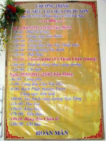 Được biết, ngày hôm sau (29/03/2011), chùa Phước Sơn tiếp tục nghi lễ cúng dường Trai tăng và đăng đàn chẩn tế trông thật hoành tráng so với một ngôi chùa nhỏ tầm vóc nhưng tấm lòng đối với chúng sinh thì vô lượng. Thật trân trọng thay!