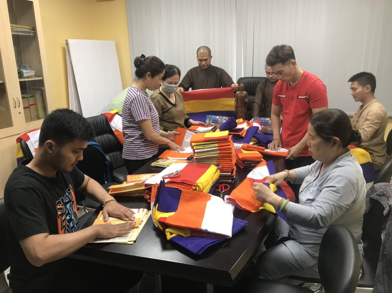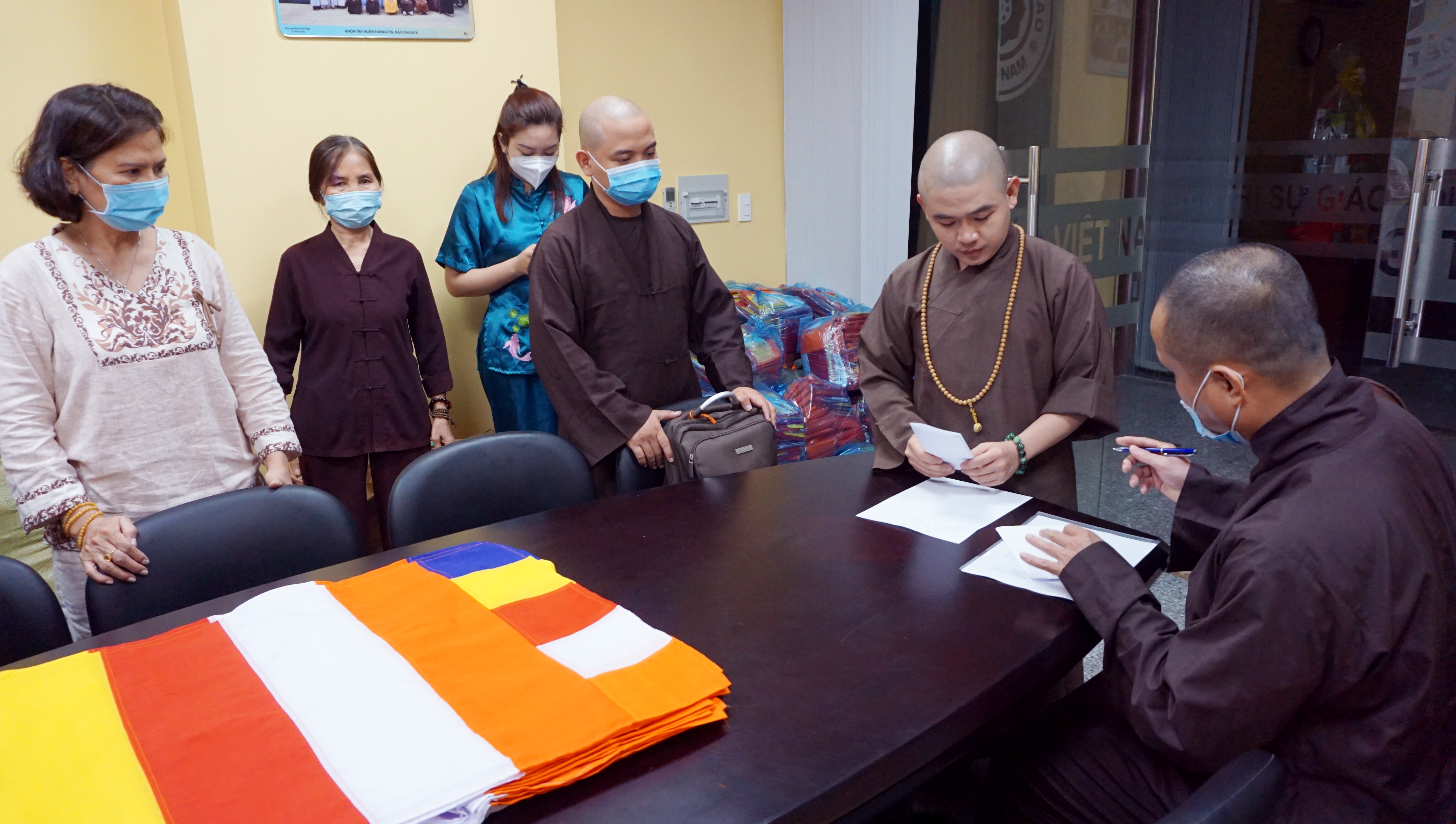Từng lá cờ Phật giáo được các Phật tử đón nhận trong niềm hân hoan kính mừng Đại lễ Phật đản PL.2565 và kỷ niệm 40 năm ngày thành lập Giáo hội Phật giáo Việt Nam (7/11/2081 – 1/11/2021).