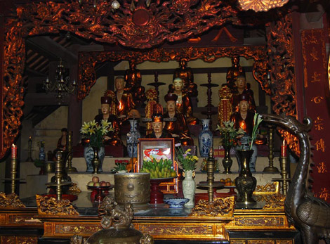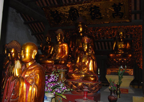 Sau chùa là nhà tổ, trong chùa thờ Trúc lâm tam tổ: Trần Nhân Tông – người sáng lập ra thiền phái Trúc Lâm Việt Nam; rồi đến Pháp Loa và Huyền quang. Tam tổ Huyền Quang ngài đã giữ được tấm gương lòng sắc sắc – không không, vượt qua thử thách dục tình của cung nữ Điểm Bích, người được vua Anh Tông cử đến thử xem sư Huyền Quang có ức chế được tình dục hay không?