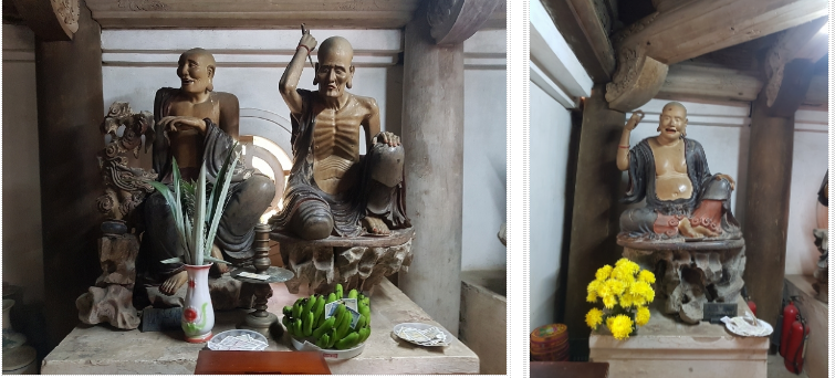 Mỗi tòa có hai tầng, mái kiểu chồng diêm, tường xây toàn bằng gạch Bát Tràng nung đỏ, để trần tạo thành một không khí rất thô sơ mộc mạc, điểm những của sổ tròn với biểu tượng sắc và không; các cột gỗ đều kê trên đá tảng xanh trong khắc hình cánh sen.