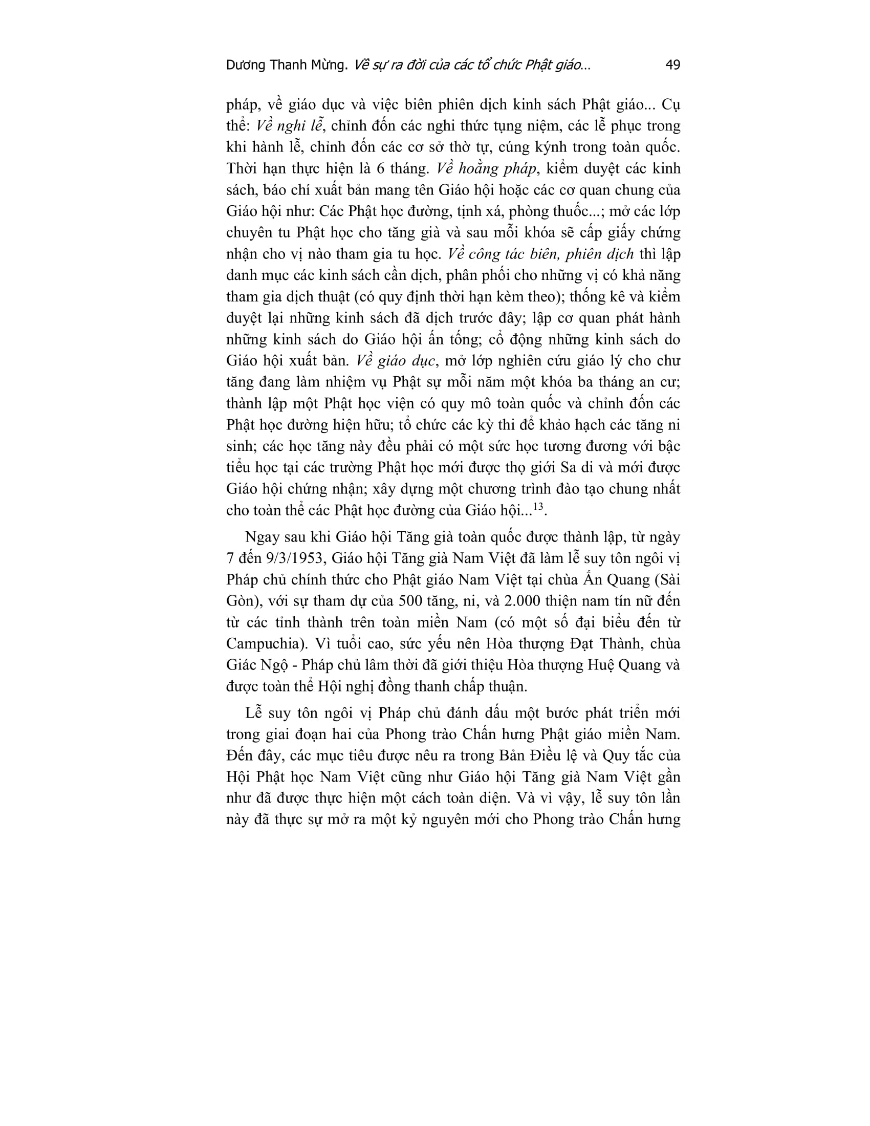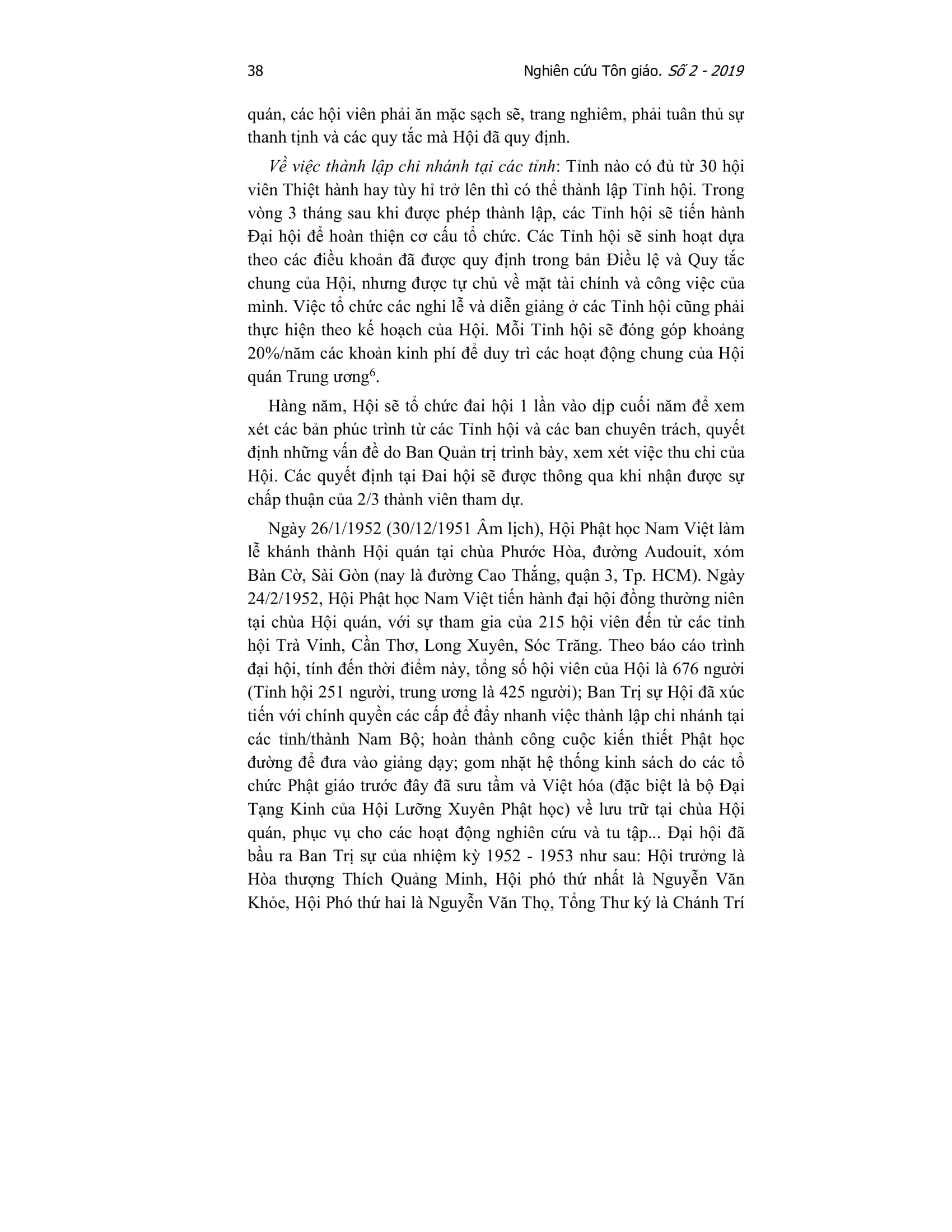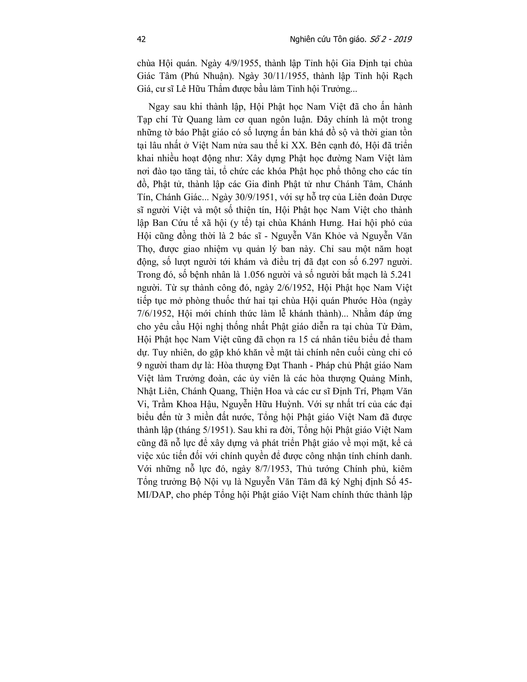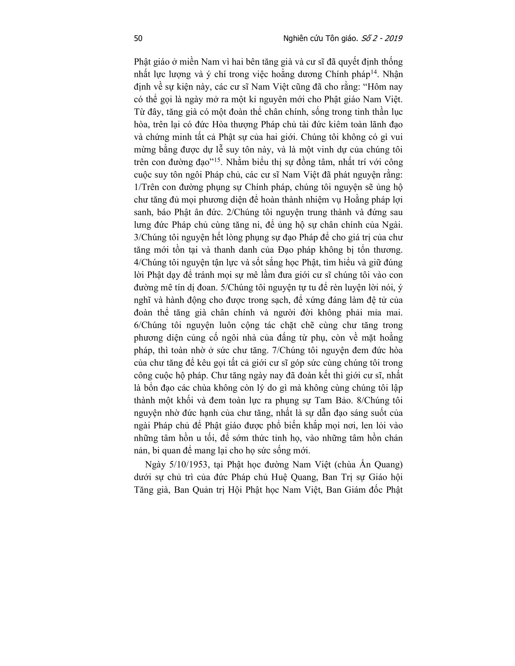 Cho đến nay, nghiên cứu về tình hình Phật giáo miền Nam giai đoạn 1951 – 1954, vẫn còn là một khoảng trống đối với nhiều học giả trong và ngoài nước. Trong khi đó, những bước chuyển của Phật giáo miền Nam giai đoạn này lại giữ một vai trò, vị trí vô cùng trọng yếu, quy định tâm thế phát triển của Phật giáo miền Nam ở những thời điểm tiếp theo. Nhằm góp phần làm sáng tỏ hơn vấn đề này, chúng tôi đi vào phân tích và trình bày thêm một số nét về sự ra đời của Hội Phật học Nam Việt và Giáo hội Tăng già Nam Việt. Đây chính là hai tổ chức Phật giáo giữ vai trò nòng cốt trong các hoạt động chấn hưng tại miền Nam kể từ sau khi Tổng hội Phật giáo Việt Nam ra đời, cũng như trong công cuộc đấu tranh để giữ vững sự vẹn toàn của Đạo pháp trước Pháp nạn năm 1963.