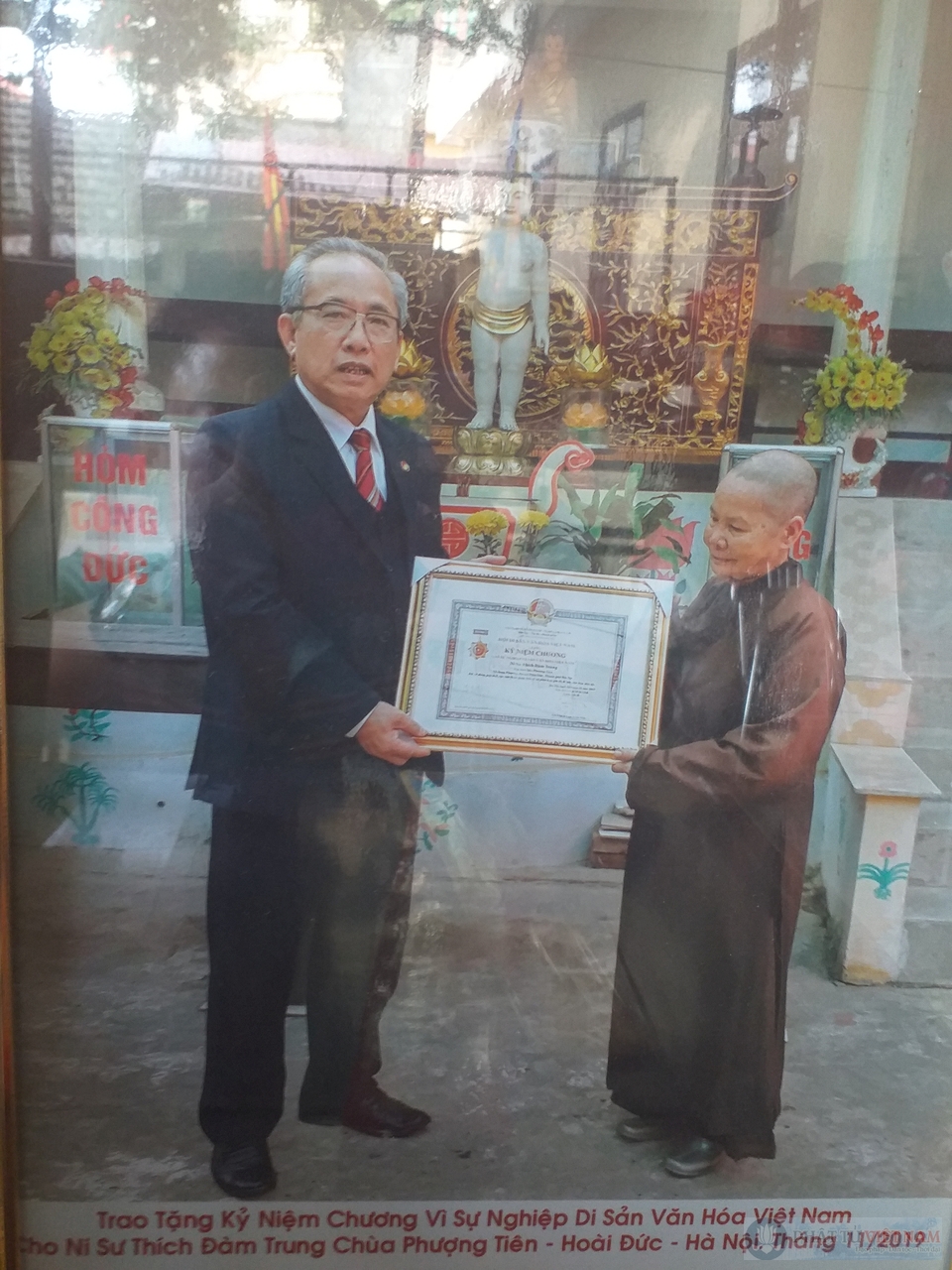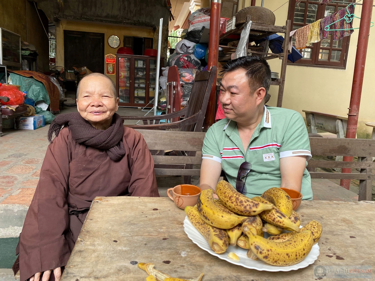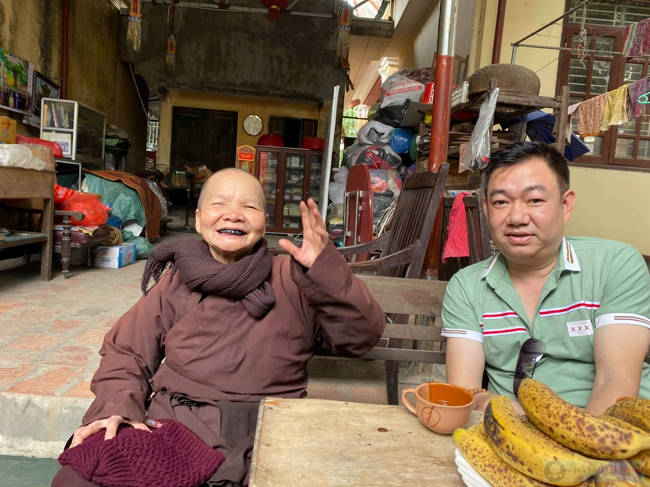 Tôi ngồi hầu chuyện với sư cụ trụ trì Thích Đàm Trung – một ni sư đậm nét chất phác với nụ cười hiền và hàm răng đen óng, lóng lánh đặc trưng của phụ nữ đồng bằng Bắc Bộ xưa kia.