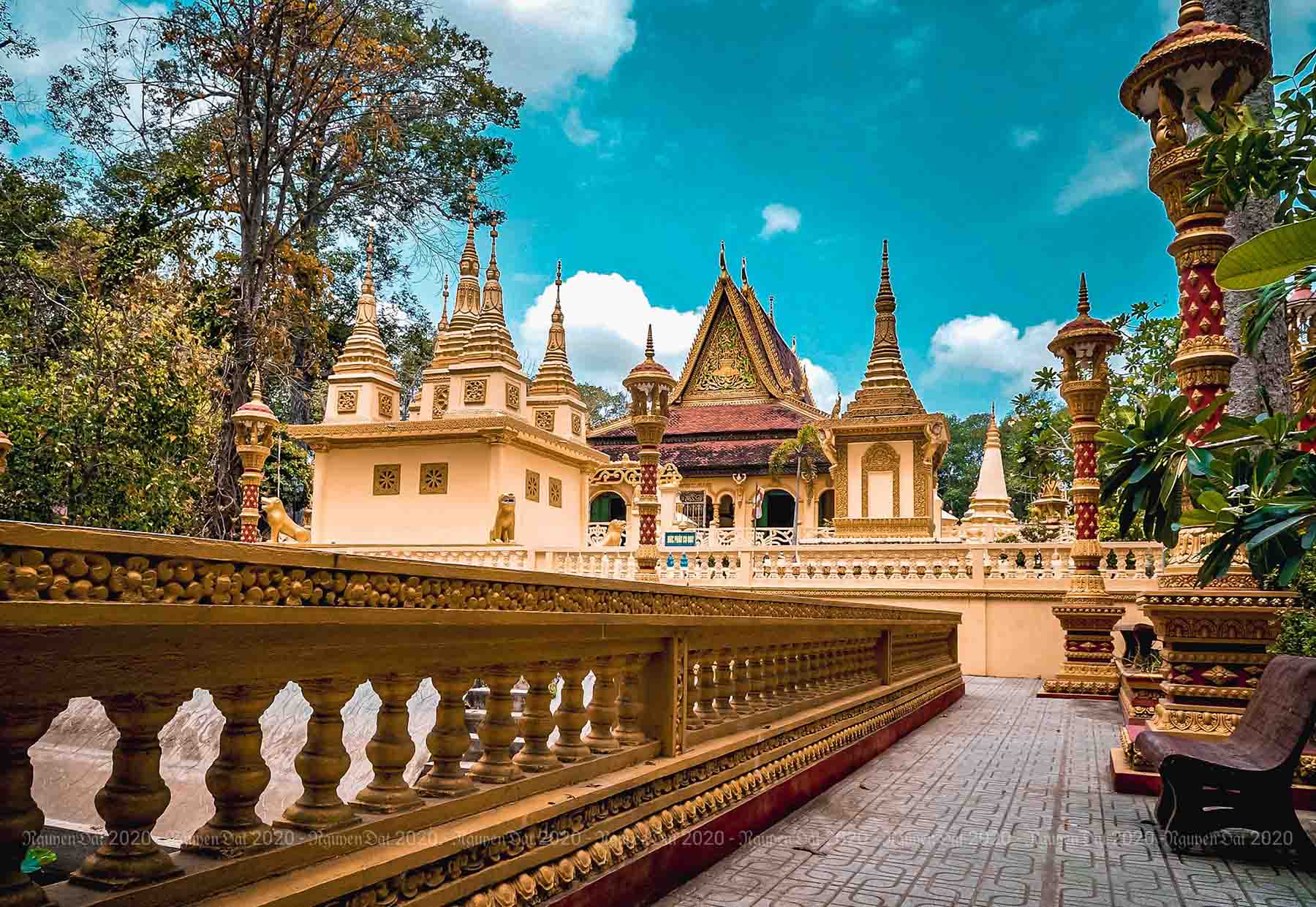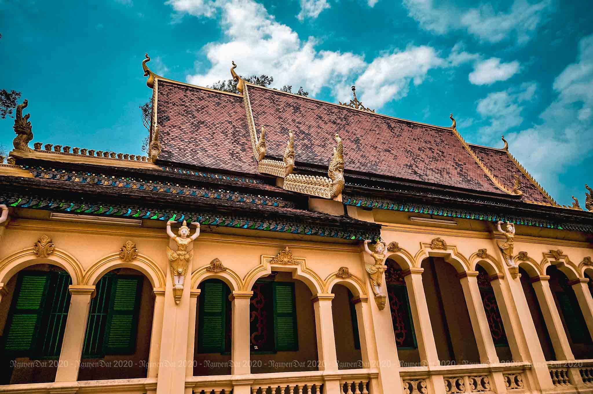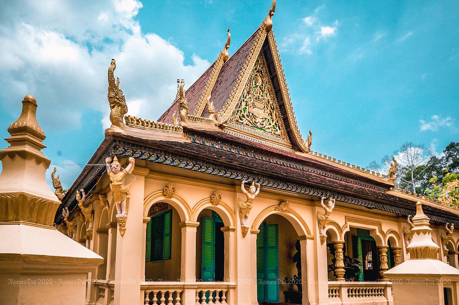 Chùa Âng sở hữu kiến trúc đặc trưng của chùa Khmer, với những đường nét hoa văn tinh xảo và màu sắc tươi sáng. Ảnh: Nguyễn Quốc Đạt