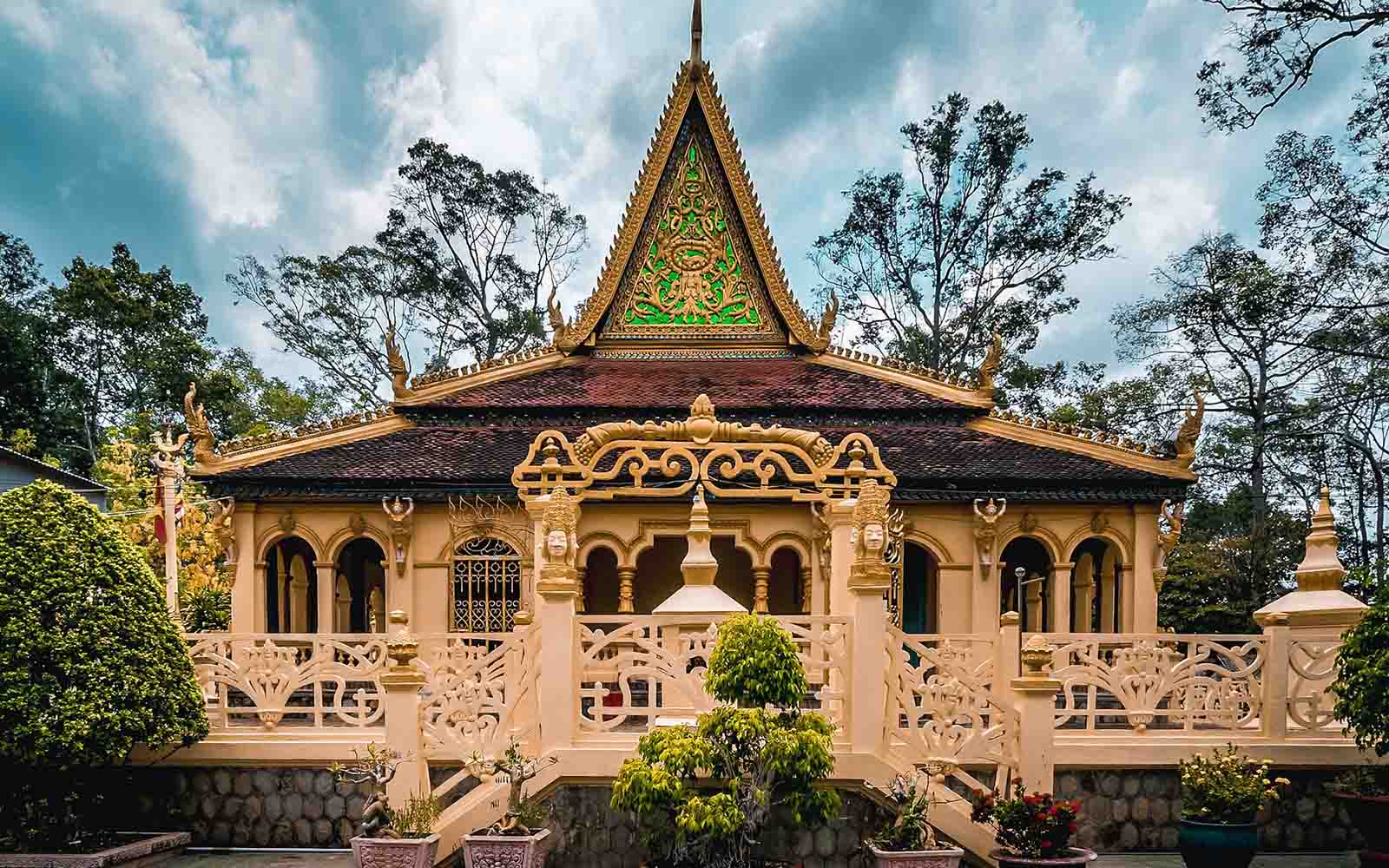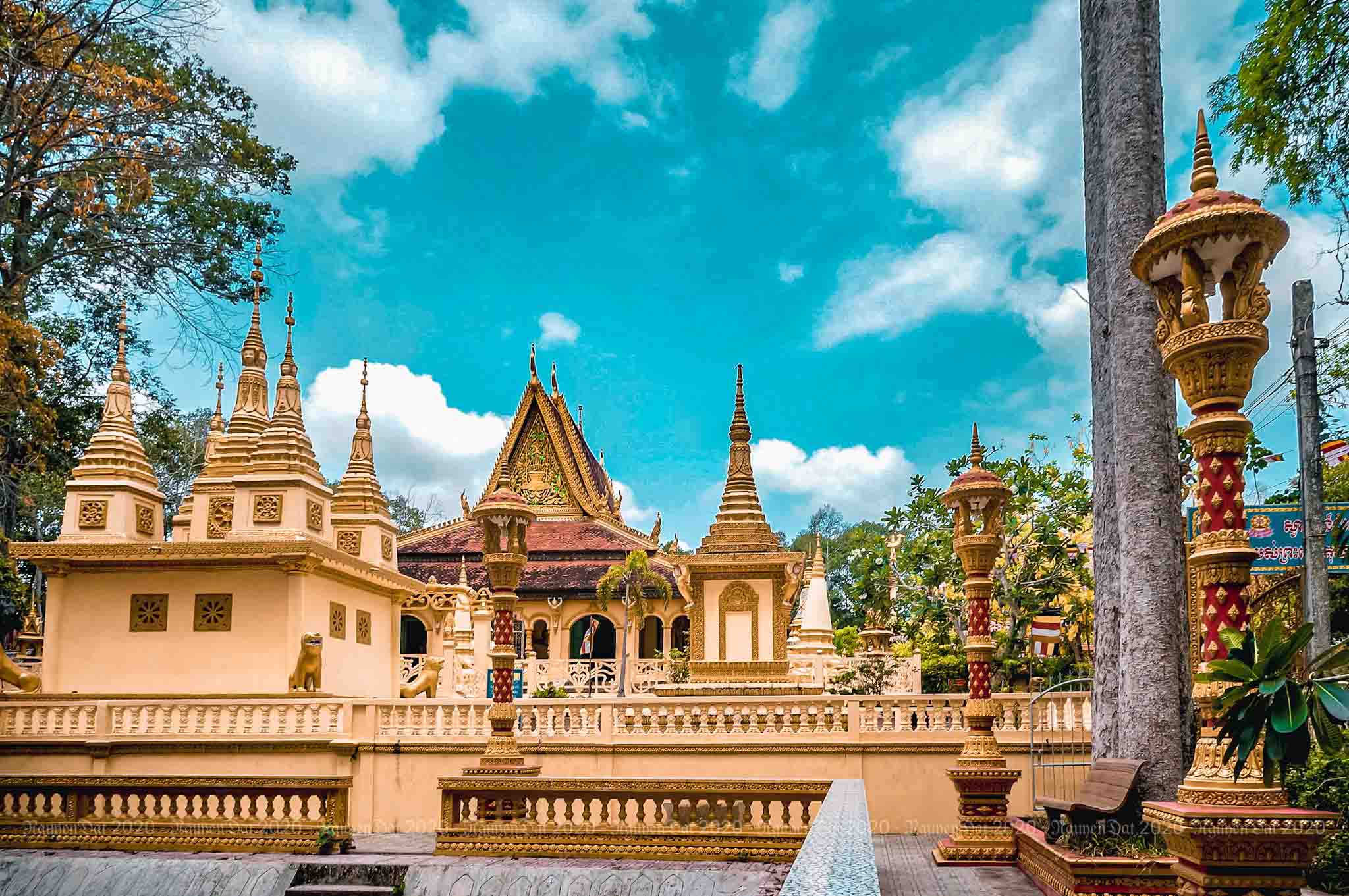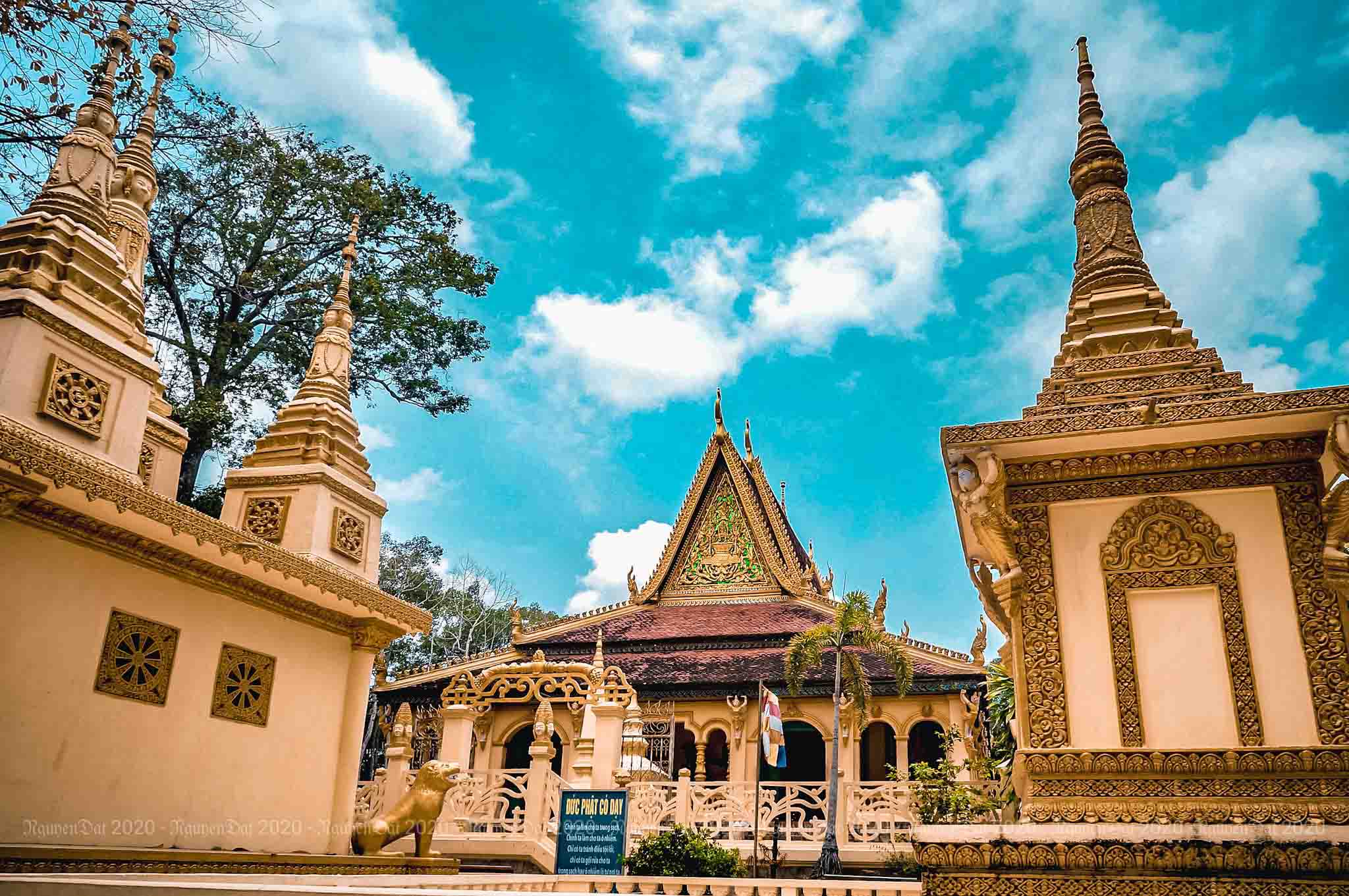 Chùa Âng sở hữu kiến trúc đặc trưng của chùa Khmer, với những đường nét hoa văn tinh xảo và màu sắc tươi sáng. Ảnh: Nguyễn Quốc Đạt