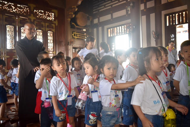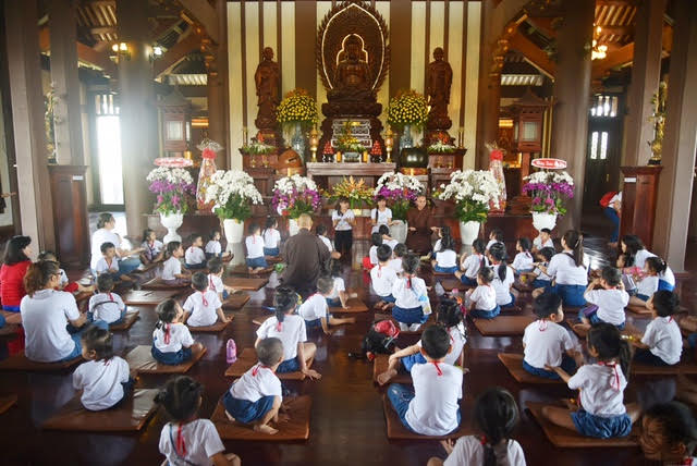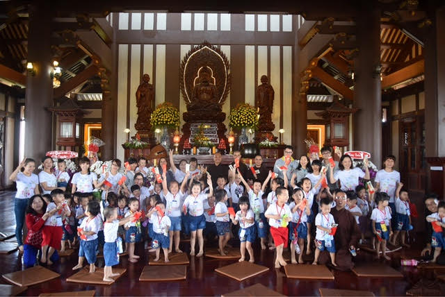 Sáng nay, các cô giáo Trường Mầm Non Bé Tài Năng đưa mấy chục cháu đến Tu viện lễ Phật, tham quan. Sau khi sinh hoạt vui chơi, ca hát . . . tôi phát lộc cho các cháu. Ngoài hồng bao lì xì năm mới, còn có một món quà nhỏ, hoặc là chiếc ngọc bội bằng lưu ly hoặc là chiếc lá bồ đề bằng gỗ, các cháu được nhận một trong hai.