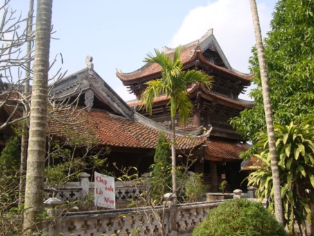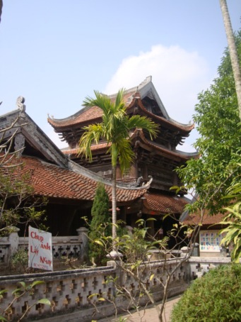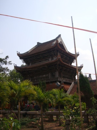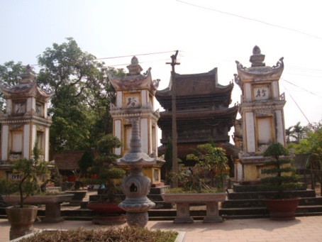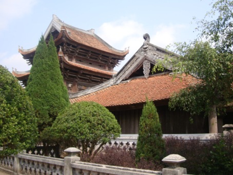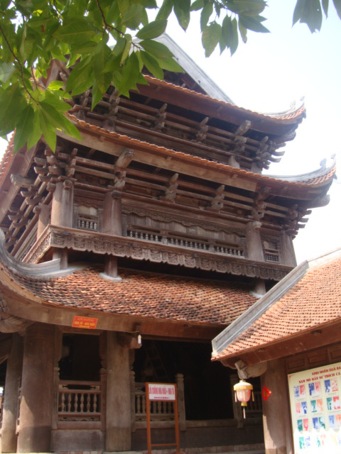 Nằm ở chân đê sông Hồng giữa vùng đồng bằng, chùa Keo với gác chuông như một hoa sen vươn lên giữa biển lúa xanh rờn.