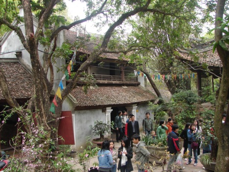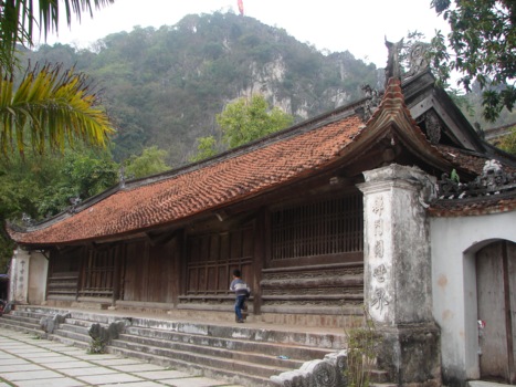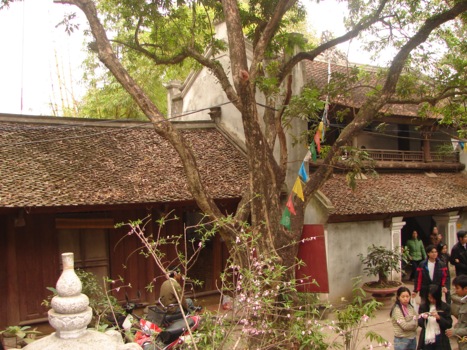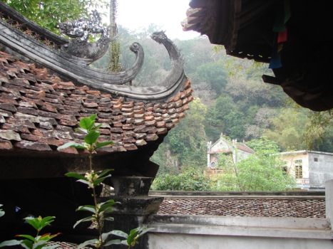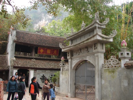 Lối vào bên trong chùa Thầy, bên trên là gác chuông
