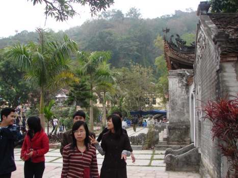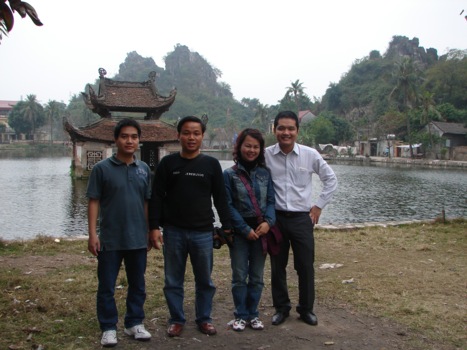 Phóng viên Phattuvietnam.net (phải) chụp hình lưu niệm với bạn bè trong chuyến du xuân