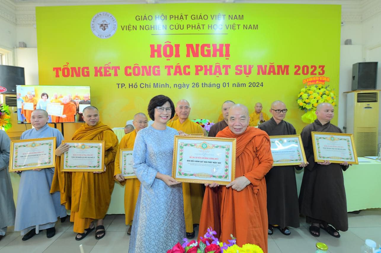 Ghi nhận những đóng góp trong công tác Phật sự của chư tôn đức, quý Phật tử Viện NCPH Việt Nam, Trung ương HĐTS có các bằng công đức, tuyên dương công đức gửi đến các tổ chức, cá nhân dịp này.