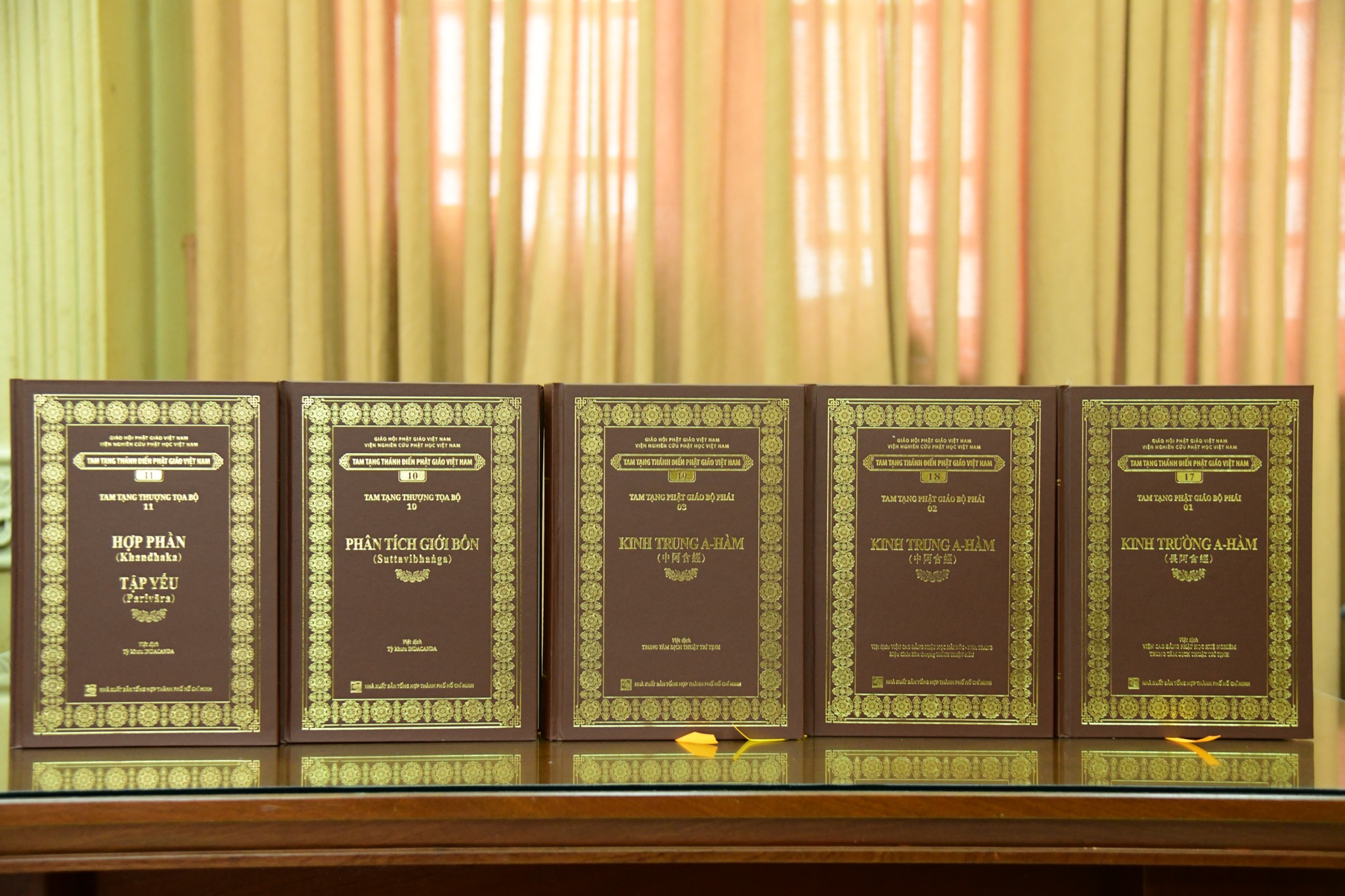 Theo Thượng tọa Thích Giác Hoàng – Tổng Thư ký Hội đồng Quản trị cho biết, hiện nay Viện đã in xong Kinh tạng Phật giáo Thượng tọa bộ (9 tập), Luật tạng Phật giáo Thượng tọa bộ (2 tập) Kinh tạng A-hàm 3 tập (Trường A-hàm do Viện Cao đẳng Phật học Huệ Nghiêm và Trung tâm phiên dịch Trí Tịnh dịch; Trung A-hàm do Viện Cao đẳng Hải Đức – Nha Trang dịch, Hòa thượng Thích Thiện Siêu hiệu đính và bản dịch của Trung tâm phiên dịch Trí Tịnh).