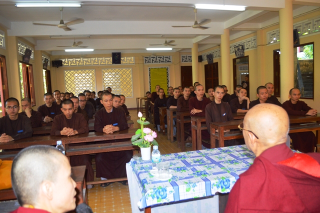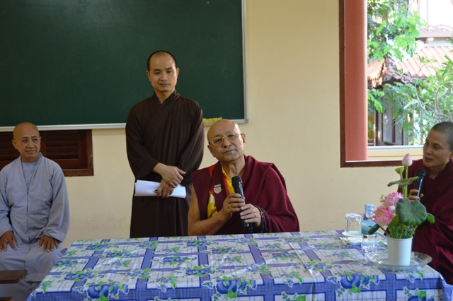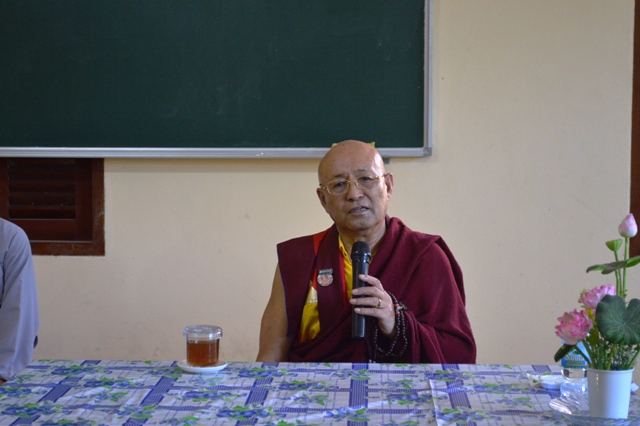 Sau khi nghe ĐĐ. Thích Nhật Hiếu- Thư ký BGH trường TCPH Khánh Hòa báo cáo quá trình hình thành và phát triển nhà trường. Với 30 phút pháp thoại cùng chư Tôn đức Tăng Ni và  Lớp Tăng sinh khóa 8 Trường TCPH Khánh Hòa Đại sư Drupon Sonam Jorphel Rinpoche  đã để lại trong lòng  người nghe những  ấn tượng đẹp- một tấm  gương đạo hạnh, giản dị, thân thiện… “Ngài là một thiện tri thức đích thực hiện diện trong cuộc đời như sự vinh quang và vị thủ hộ của Phật pháp và chúng sinh với thân tướng vĩ đại chói ngời, ngôn ngữ lộng lẫy không mỏi mệt và tâm thức bất biến trong sự xả bỏ hoàn hảo…