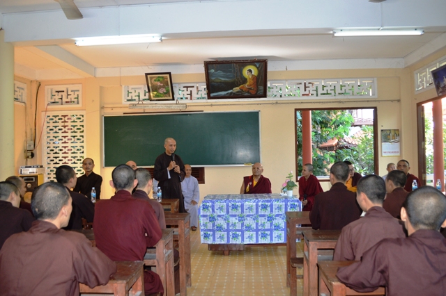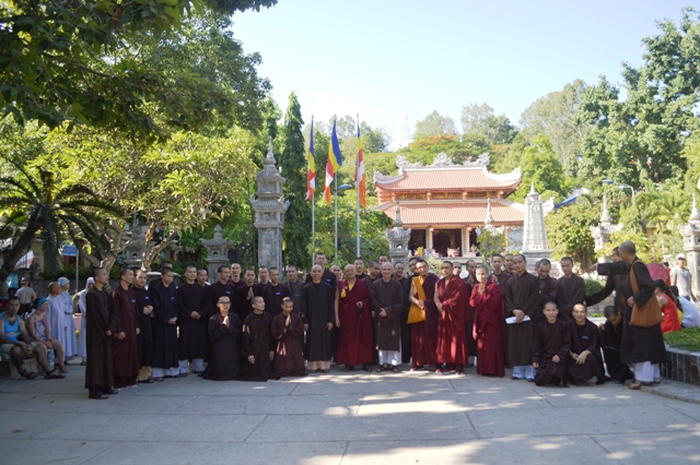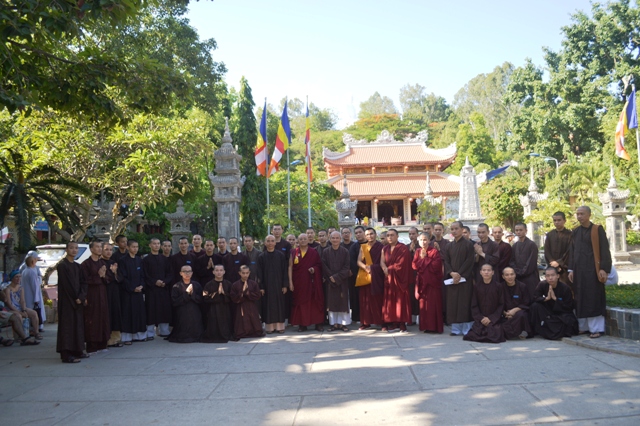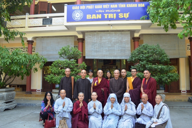 Tiếp đoàn có HT.Thích Minh Thông- Uv HĐTS GHPGVN, Phó Trưởng Ban Thường trực BTS GHPGVN tỉnh Khánh hòa, Hiệu trưởng Trường TCPH Khánh Hòa, ĐĐ. Thích Nhật Hiếu, Uv Thường trực BTS, Trưởng Ban Hướng dẫn Phật tử Khánh Hòa;  ĐĐ.Thích Thiện Quang , Uv Thường trực BTS Trưởng Ban Phật giáo quốc tế Khánh Hòa, chư Tôn đức Tăng Ni BTS  GHPGVN tỉnh, giáo thọ và Tăng sinh trường TCPH Khánh Hòa.