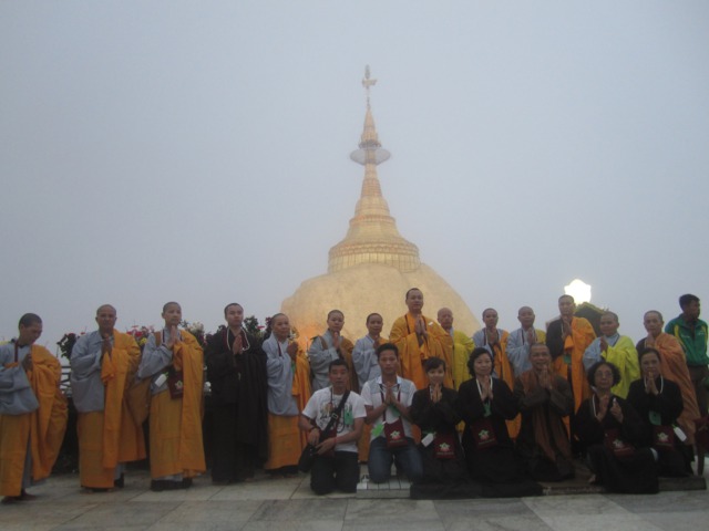 Sáng hôm sau Đại đức Thích Minh Đồng cùng chúng tôi ra chùa Núi Vàng Golden Rock lúc 4 giờ sáng. Chúng tôi ở đó thiền và lễ Phật đến 07h sáng thì về ăn sáng rồi quay trở về Yangon. Cả đêm hôm đó lẫn sáng trời sương mù. Mây bay khắp nơi. Đẹp đến khó tả. Đúng như cảnh giới khác chứ không phải trái đất của chúng ta!