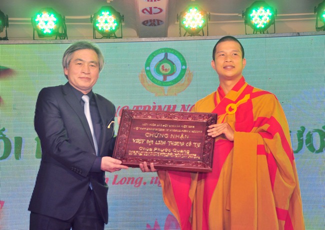 Trong chương trình, Đại đức Thích Phước Ngọc- Trưởng Ban Tổ Chức, trụ trì kiêm giám đốc Trung Tâm Cô nhi viện Phật giáo Suối Nguồn Tình Thương đã thay Ban Kiến Tạo chùa Phước Quang đón nhận danh hiệu “Việt Nam Linh Thiêng Cổ Tự” do Liên Hiệp Các Hội Unesco Việt Nam công nhận.