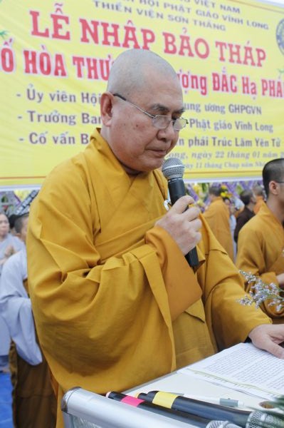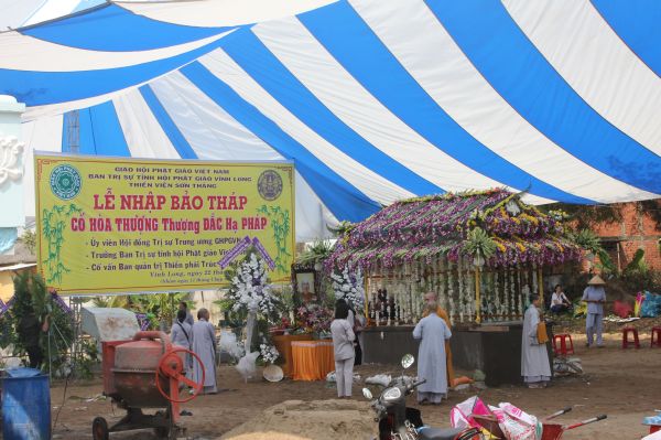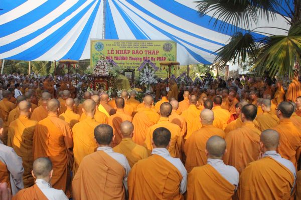 – Nghi lễ nhập bảo tháp được thực hiện theo nghi thức truyền thống Phật giáo. HT. Thích Phước Tú tuyên đọc cuộc đời và hành trạng cố HT. Thích Đắc Pháp, HT. Thích Thiện Nhơn tuyên đọc điếu văn của HĐTS TW GHPGVN, HT. Thích Như Tước cung tuyên điếu văn của BTSPG tỉnh Vĩnh Long, ông Đỗ Hoàng Huynh – Tỉnh ủy viên kiêm CTUBMTTQ đọc cảm tưởng. Đáp lại tấm chân tình mà chư tôn đức cùng quý Phật tử đã dành cho BTC, TT. Thích Trí Hải thay mặt môn đồ hiếu quyến đọc lời cảm tạ và dành những tình cảm sau cùng đối với ân sư, trước khi tiễn người về cõi Phật.