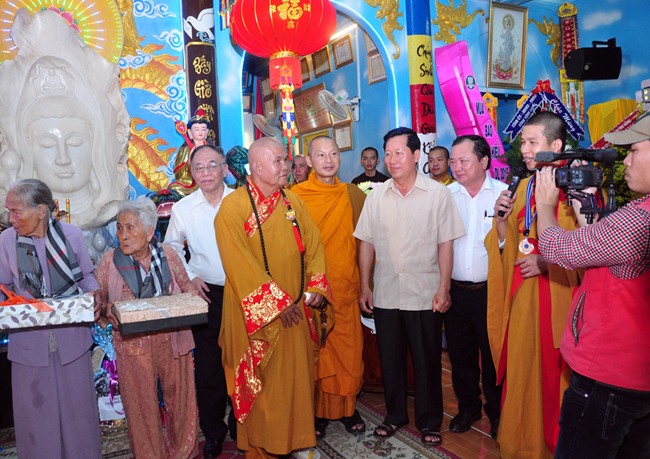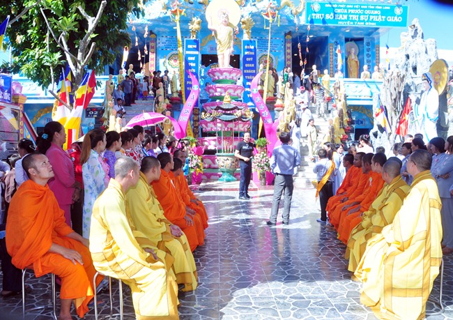 Đại Lễ Vu Lan năm nay, chùa Phước Quang (Tam Bình – Vĩnh Long) hân hạnh được sự quang lâm của ông Doãn Mậu Diệp – Thứ Trưởng Bộ Lao Động TB&XH, ông Nguyễn Văn Quang – Chủ Tịch UBND tỉnh, ông Đỗ Hoàng Huynh – Chủ Tịch MTTQ VN Tỉnh, ông Lê Quang Đạo – Giám Đốc Sở LĐTB&XH, cùng Lãnh Đạo CA Tỉnh Vĩnh Long, Lãnh đạo các ban ngành Tỉnh Huyện; về khách quốc tế có ông Alim – thư ký Lãnh Sứ Quán nước Hồi giáo Cô-oét tại VN; về phía giáo hội có sự quang lâm chứng minh của Hòa Thượng Sơn Ngọc Huynh – UVTT HĐTS TW GHPGVN, chủ tịch hội sư sãi yêu nước đặc trách Khmer Nam Tông dẫn đầu đoàn Chư Tôn Giáo Phẩm tỉnh đồng chứng dự. Hiệp cùng hơn một ngàn quan khách, đại biểu, tăng, ni, phật tử khắp nơi về tham dự đại lễ.