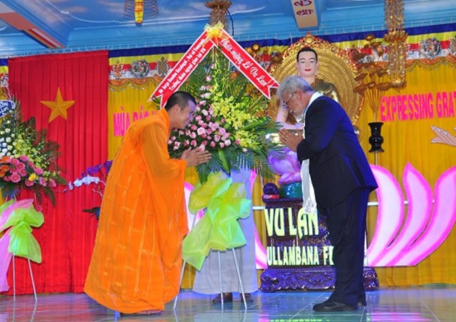 Phát biểu tại đại lễ, trước sự chứng dự của đông đảo Tăng ni, phật tử, bạn bè quốc tế, ông Nguyễn Văn Thanh – Trưởng Ban tôn giáo Ủy ban TW MTTQ VN đã mở đầu bài phát biểu bằng một câu chuyện xúc động về “Mẹ là Phật”. Qua đó, ông tán thán những đóng góp của Phật giáo Việt Nam nói chung, và những hoạt động tôn giáo, thiện nguyện của Đại đức Thích Phước Ngọc trong thời đại đất nước hội nhập và phát triển. Ông cũng chân thành gửi lời chúc Vu Lan đến toàn thể tăng ni, Phật tử, và lời chúc đoàn kết thân ái đến các Đại sứ đã có mặt trong buổi lễ Phật giáo tại Việt Nam.