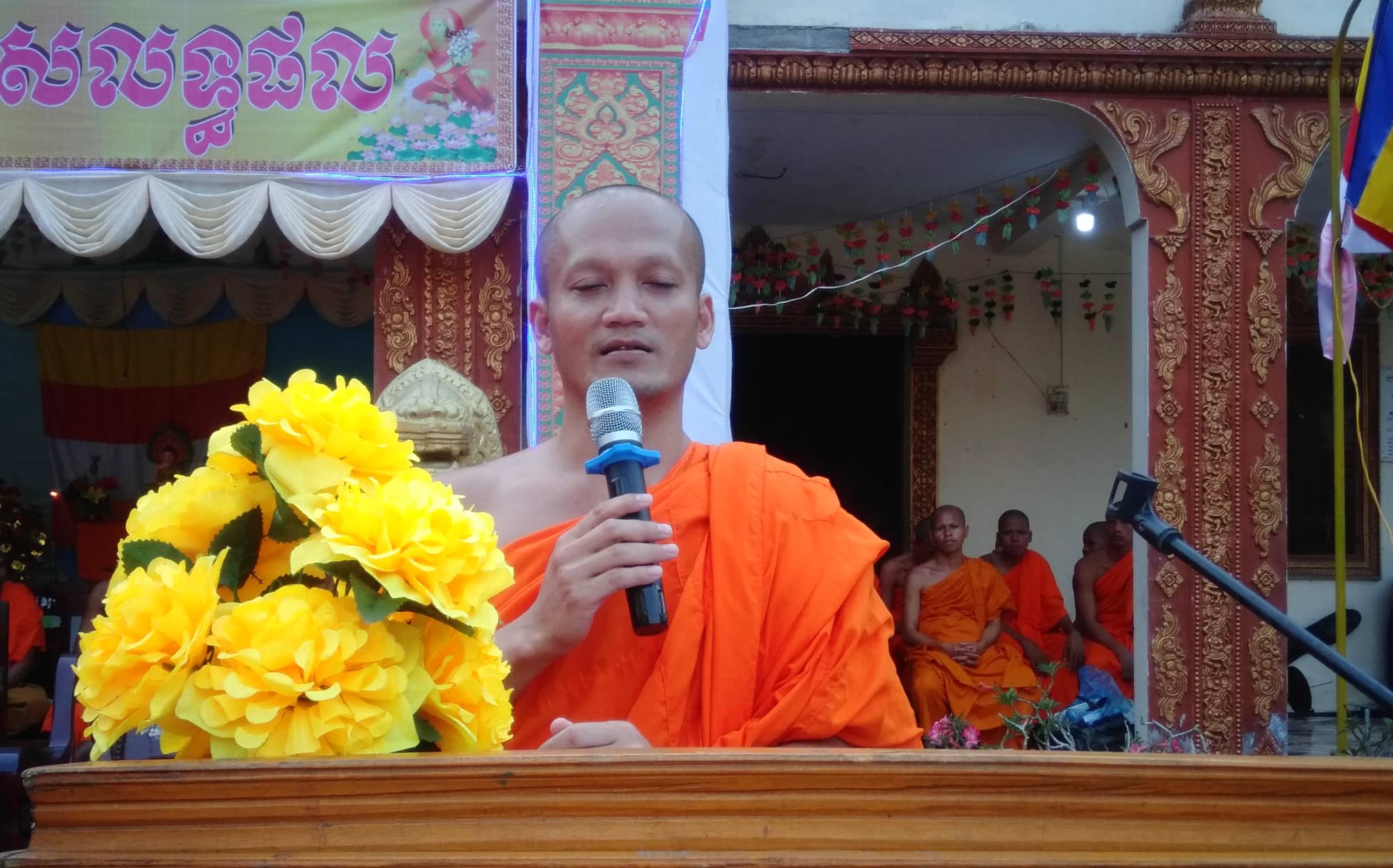 Đại đức Thạch Xa Rốt – Phó chánh Thư ký Hội ĐKSSYN tỉnh Vĩnh Long điều phối chương trình, cung thỉnh chư Tôn đức và quý Phật tử niệm Phật cầu gia hộ; ca tụng cờ Phật giáo và tưởng nhớ các bậc hữu công đã hy sinh vì Đạo pháp và Dân tộc. Giới thiệu thành phần tham dự và tuyên bố lý do buổi lễ.