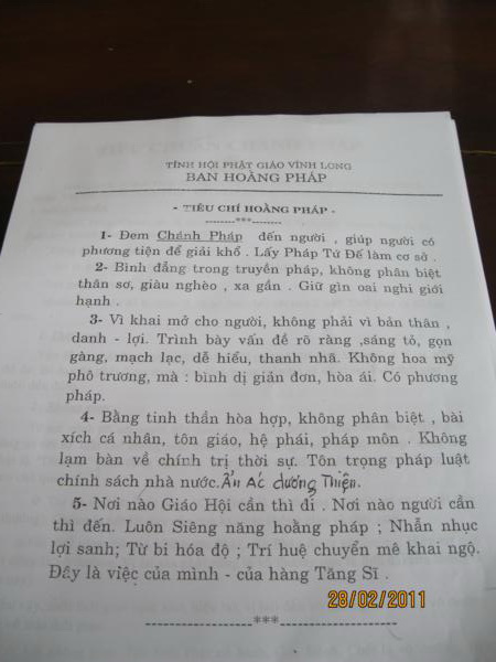 Trong những năm qua, Phật giáo Vĩnh Long có nhiều khởi sắc, đó là do sự nỗ lực không nhỏ của ban hoằng pháp đã tích cực rộng mở các đạo tràng tu học cho Phật tử, nhờ đó mà tinh thần học hỏi giáo lý được nâng cao rất nhiều.