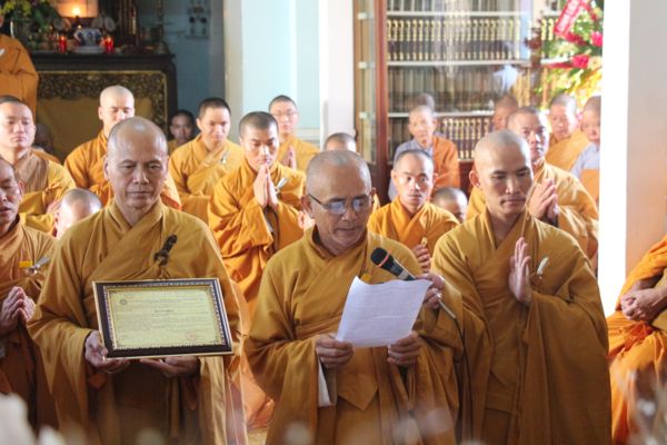 Sau đó, TT.Thích Phước Tồn, Phó ban kiêm Chánh Thư ký BTS GHPGVN tỉnh Vĩnh Long đọc quyết định bổ nhiệm trụ trì thiền viện Sơn Thắng và cung thỉnh HT.Thích Như Tước trao quyết định bổ nhiệm trụ trì cho TT.Thích Trí Hải.